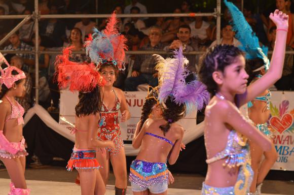 Los chicos de las comparsas fueron parte de este gran espectáculo. Con sus trajes llenos de lentejuelas y con algunas plumas, los niños no dejaron de moverse, a pesar de su corta edad. Es que incluso hubo bailarinas que debajo del caderín llevaban pañal.