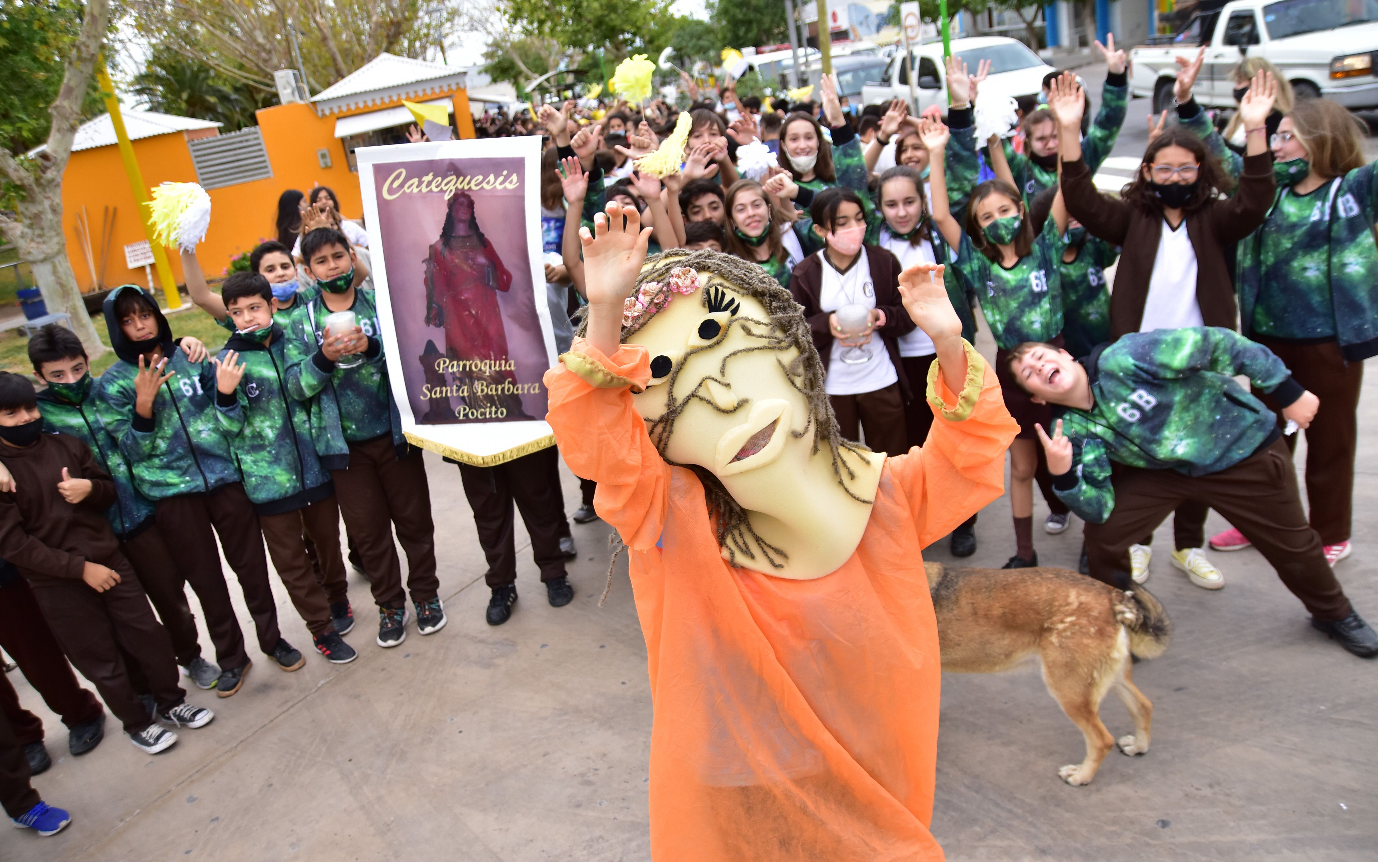Ni bien arrancó la procesión se hizo sentir el entusiasmo de los chicos. A los gritos de "¡Viva Santa Bárbara!" se sumaron las palmas que hicieron para acompañar los cantos de alabanza y el fuerte sonido de las vuvuzelas que llevaron algunos alumnos para alentar la caminata. Es que en esta actividad participan principalmente los chicos que asisten al Colegio Parroquial, aunque también lo hacen los que viven en la zona.