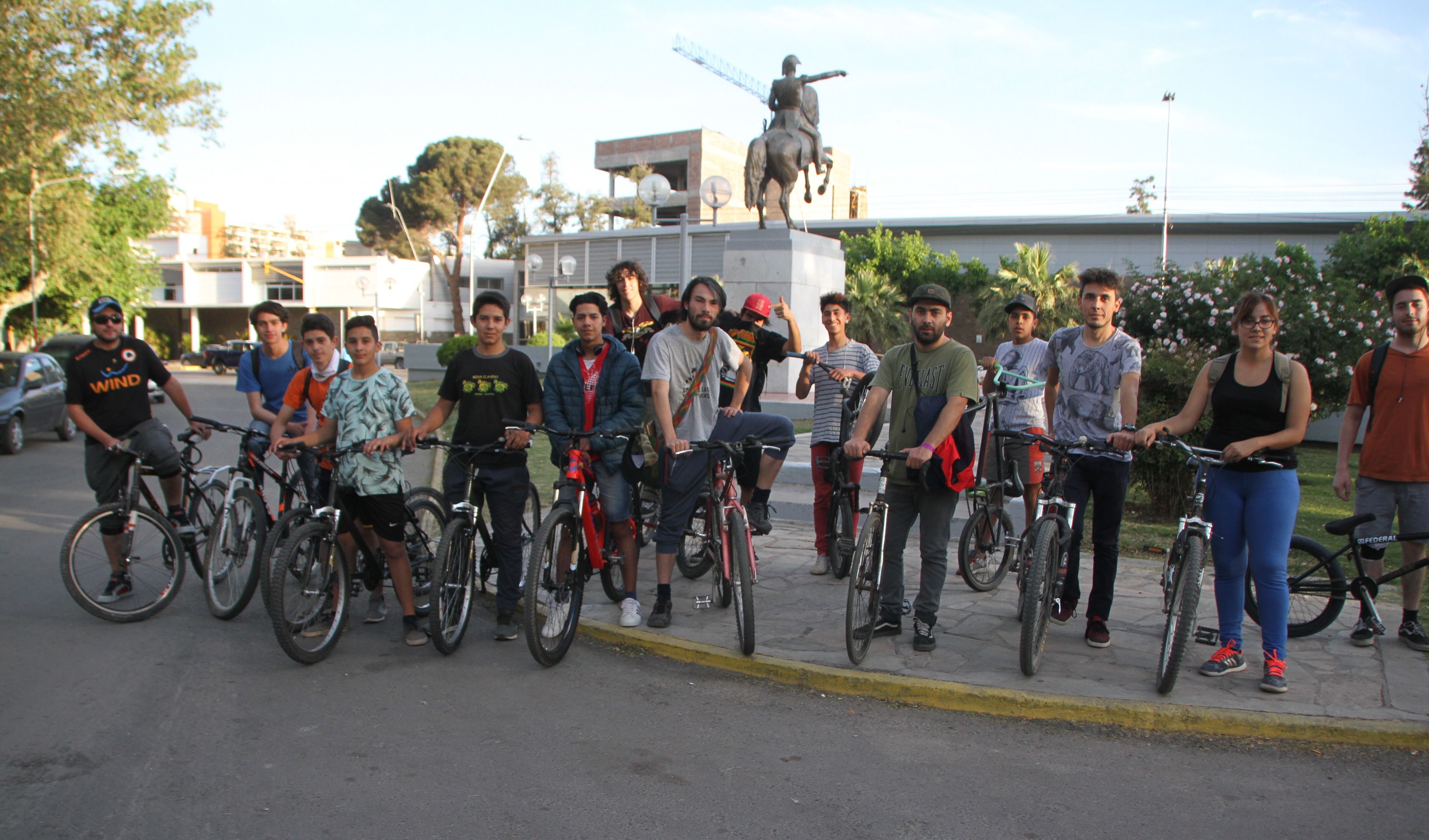 Dos días después que realizaran una bicicleteada, hicieron otra más, para disfrutar de la ciudad menos bulliciosa debido a la ausencia de colectivos y a una menor circulación de autos, por el paro general. A viva voz, detrás del monumento al general San Martín en el Parque de Mayo, hacían el último llamado antes que partiera la columna de ciclistas, que tuvo una respuesta de casi 20 personas.