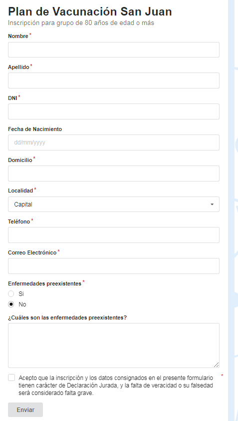 La inscripción es hasta completar el cupo de vacunas previstas por etapas y por departamentos de la Provincia de San Juan.