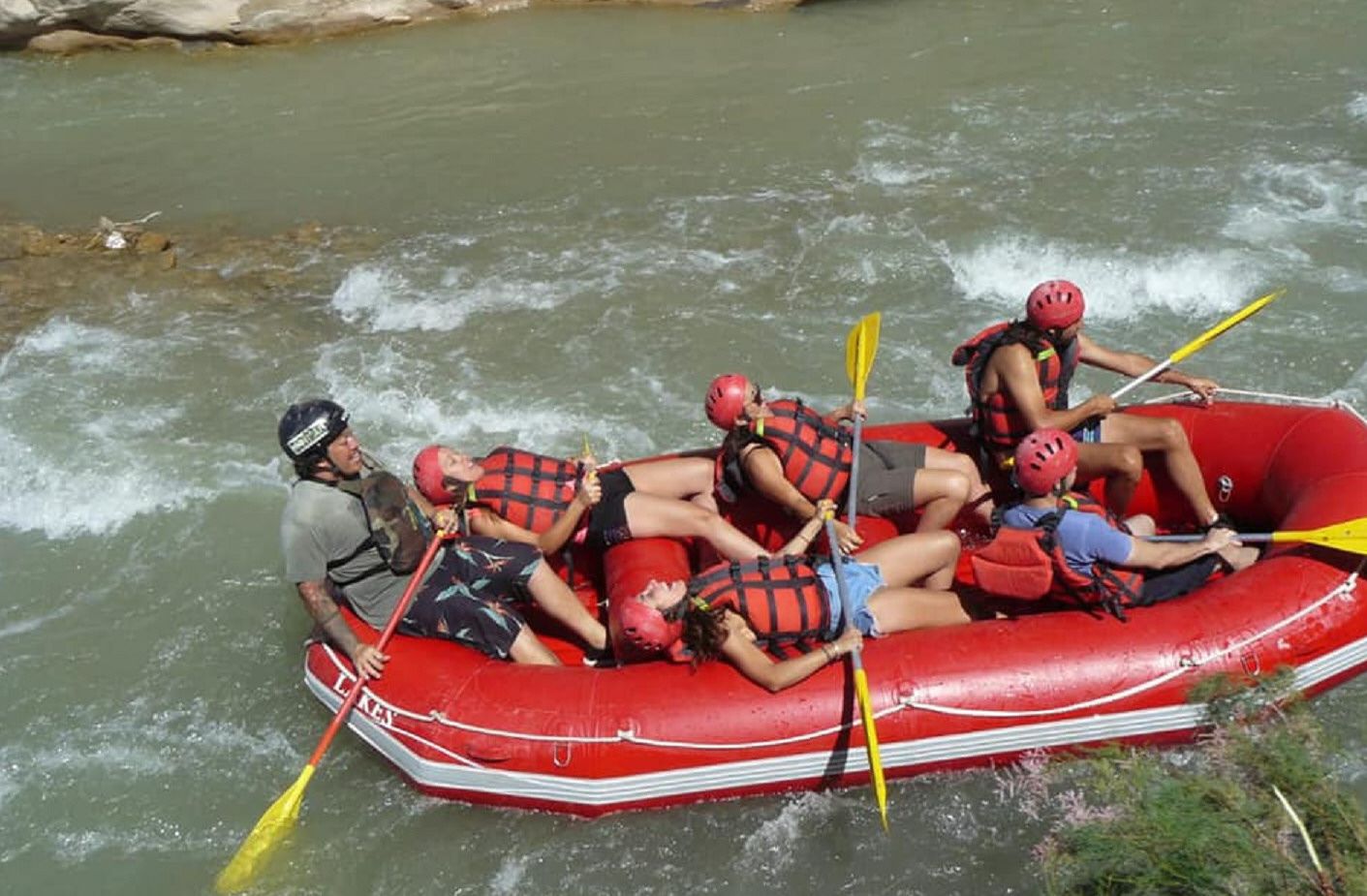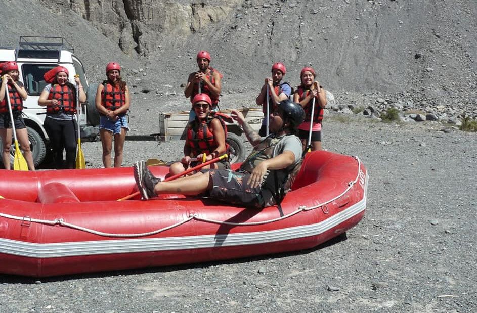 Navegación en balsa por río de montaña en el tramo desde Las Juntas hasta Las Caletas, actividad de medio día, dificultad media. Se realiza todos los días a las 9,30 y a las 14,30. Hacer reservas en el 264 6619057 y el costo por persona es de $ 2.200.