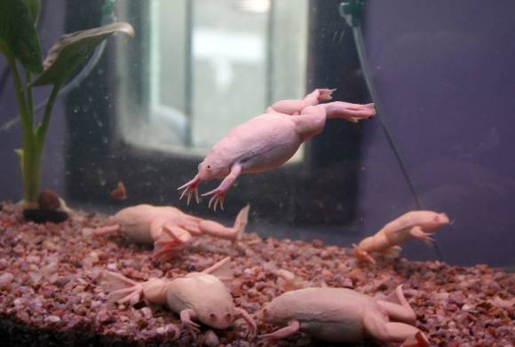 Y si de ejemplares poco agraciados se trata, se destacan las ranas albinas. Estos animales son criados en el Hidrobiológico y se caracterizan justamente por ser de color blanco, además de tener impactantes ojos rojos.