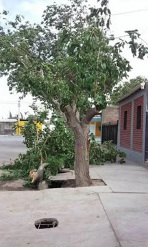En el barrio Amecom II, un árbol se arrancó de raíz, cayendo completamente sobre la vereda.