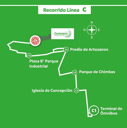 Las salidas hacia el Complejo Ferial Costanera son desde las 19 hasta las 23, todos los días. En caso de que la afluencia de pasajeros sea muy alta se dispondrá un refuerzo en la línea correspondiente cada 15 minutos. Los horarios de salida desde el Complejo ferial para retornar son desde las 23 hasta las 4 de la mañana, todos los días desde el acceso 4. Las unidades salen cuándo están completas para evitar la concentración de pasajeros.