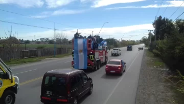 En las puertas de los establecimientos se reunieron niños con banderas argentinas que saludaron y aplaudieron a los ex Combatientes. Mientras tanto, los conductores acompañaron con sus bocinas el paso de los hombres que lucharon para recuperar el territorio argentino.