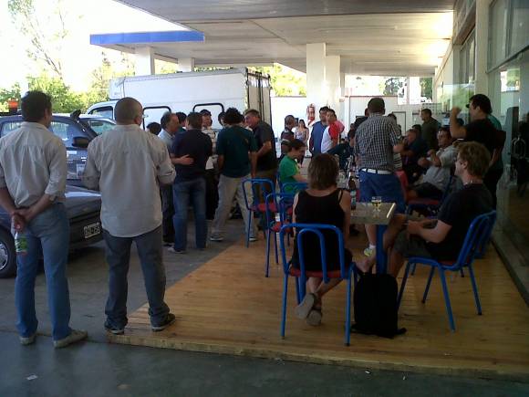 San Juan, 8 de febrero.- Los más de 130 expedicionarios del Cruce de Los Andes 2012 arribaron pasadas las 18:30 a Barreal, Calingasta. Allí, el grupo se paró en la estación de servicio para merendar, siguiendo una cábala que se realiza en todas las ediciones.
