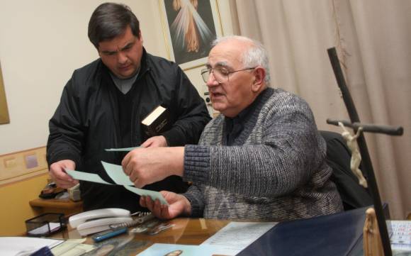 Ya en la oficina de la Catedral, Moreno y 2 guardianes dicen la oración de inicio de la tarea. Luego, suena por primera vez el teléfono. En promedio reciben 3 llamadas por noche, para atender a personas que están en un hospital o en su casa. La que se comunicó esta vez es una mujer que tiene a su tía de 80 años inconsciente. A las 23.30 ya recibieron 3 pedidos de asistencia. Y habrá uno más justo cuando llegue el padre Daniel Sebastian, uno de los sacerdotes de la Catedral. Él está equipado con su Biblia y el óleo de los enfermos. Después de ponerse al tanto sobre los llamados arma su ruta. Uno de los guardianes toma las llaves de su auto particular y lo lleva. El otro, sigue en la oficina controlando el teléfono.