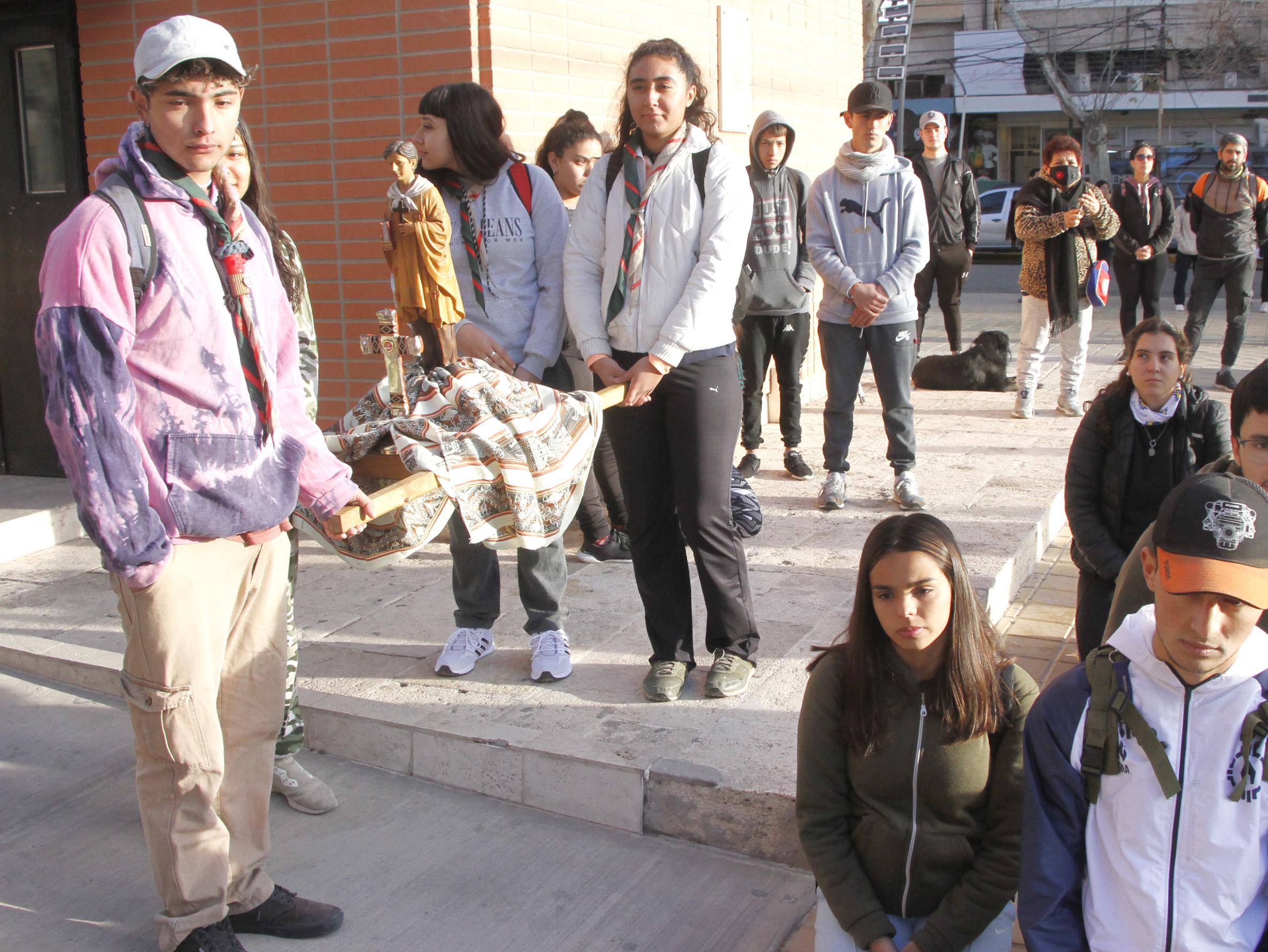 Los chicos del grupo Scouts San Damián, de la villa homónima de Rawson, realizaron toda la peregrinación portando una imagen del beato Ceferino Namuncurá. Hicieron relevos para descansar de tanto en tanto.