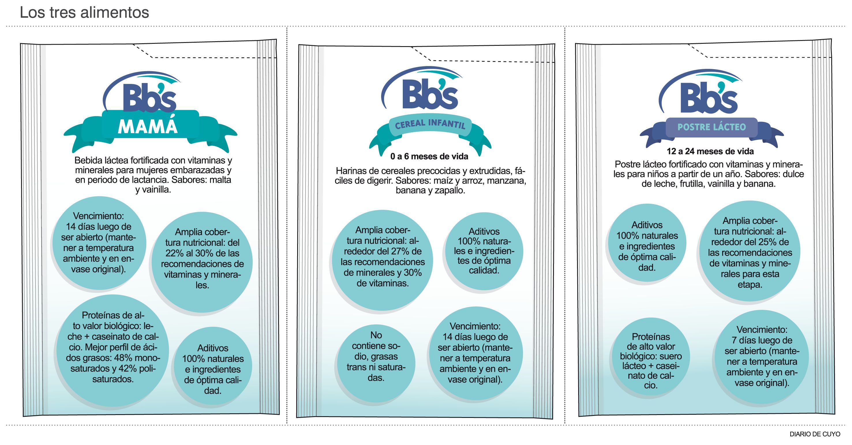 "Técnicamente se considera un suero lácteo, por su alto valor biológico. Contiene hierro, calcio, ácido fólico, vitaminas y a su vez reviste características organolépticas propias para mamás. El polvo se hace un poco espeso cuando se mezcla con el agua hervida, por lo tanto no puede darse a un niño en una mamadera. A veces pasa que la madre no consume el alimento que debe ingerir y a los cuatro meses termina dándoselo al niño. Es común, por eso hemos tenido en cuenta esta situación en la composición del alimento", explicó Érica García, licenciada en Nutrición del Ministerio de Salud Pública de la provincia de San Juan. Y agregó: "Los productos también están pensados en relación a los sabores, para llamar la atención de acuerdo a la etapa. Para mamás tienen sabor malta o vainilla, para los bebés de seis meses a un año hay dulce o salado y para la última etapa también hay variedad de sabores dulces como banana, manzana, dulce de leche, frutilla y vainilla".