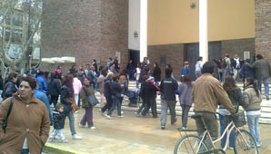 San Juan, 5 de septiembre.- Pasadas las 10, movimientos sociales encabezados por el Polo Obrero realizaron una marcha que concluyó en el interior de la Iglesia Catedral, lugar en el que permanecieron hasta que llegó el secretario de Abordaje Territorial, luego de hablara el padre Rómulo Cámpora intercediendo por ellos ante las autoridades del gobierno.