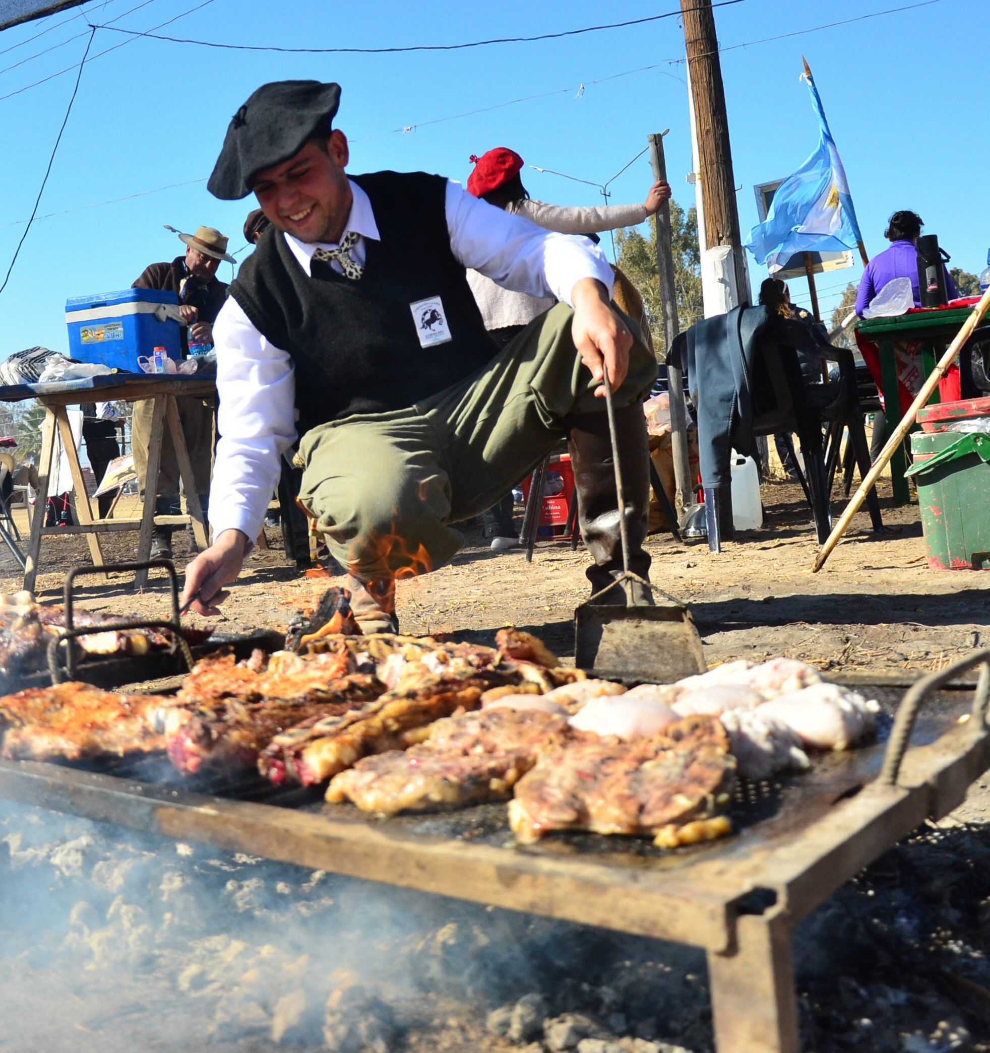 Jesús López fue el encargado de preparar el asado para los 17 integrantes de la flamante agrupación Juan José Güiraldes, que se conformó hace un mes. “Veníamos como público común y decidimos agruparnos”, afirmó Jesús, que preparó 9 kilos entre carne de vaca, cerdo y achuras.