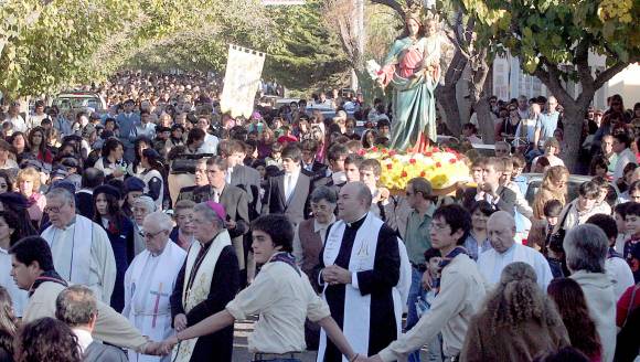 "Me duelen los pies, no quiero caminar más", decía con vos entrecortada Felipe, ayer por la tarde. El niño de 6 años es alumno de la escuela Don Bosco y estaba entre los chicos que encabezaron la procesión en honor a María Auxiliadora. La peregrinación, duró un poco más de una hora y fue parte de los festejos por los cincuenta años que cumplirá, en febrero próximo, el colegio que lleva el nombre de la Virgen. En la caminata hubo unas 10.000 personas, según estimaciones de la policía.