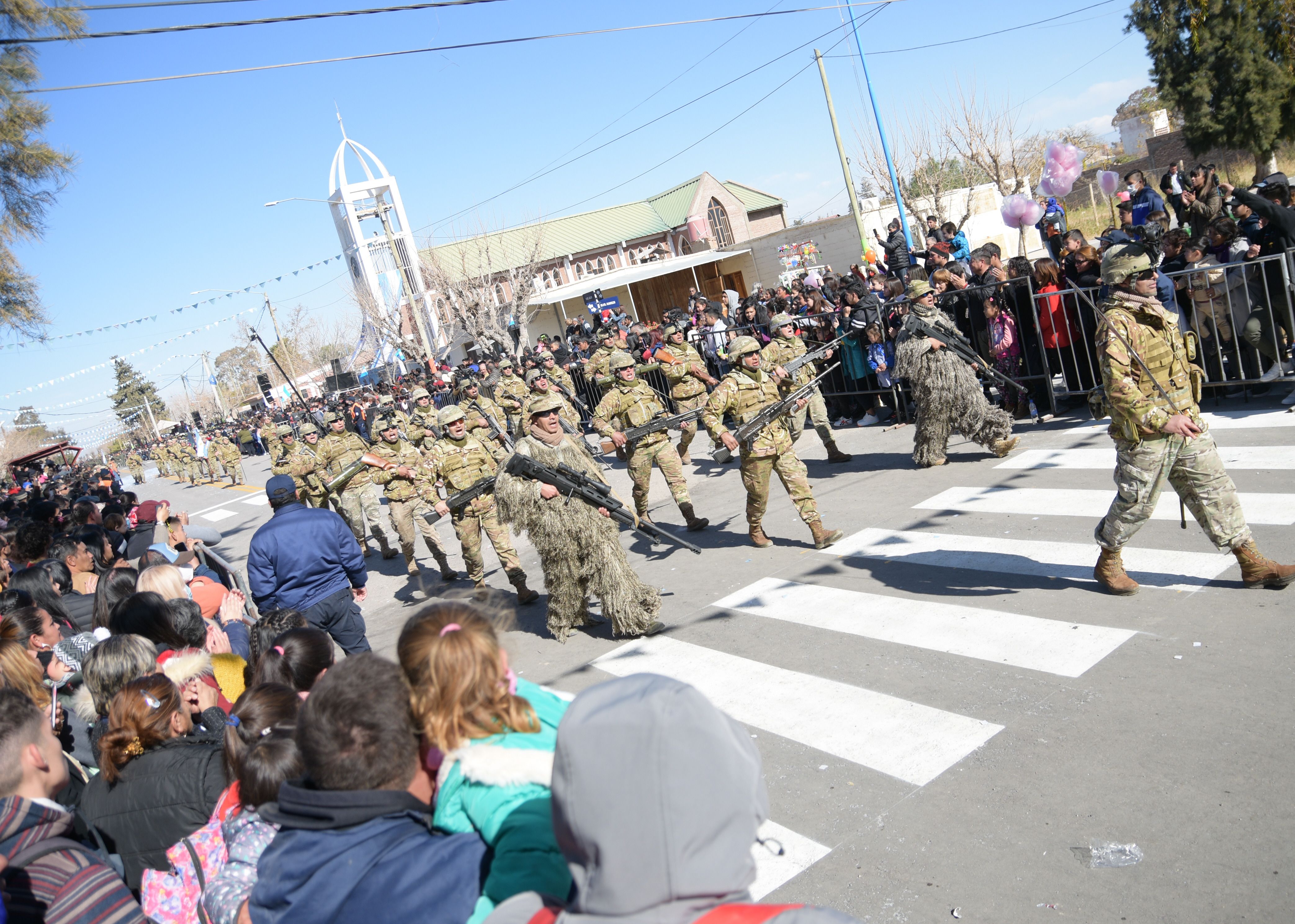 Atractivo. Niños y adultos disfrutaron del paso de los miembros de las Fuerzas Armadas y de Seguridad.