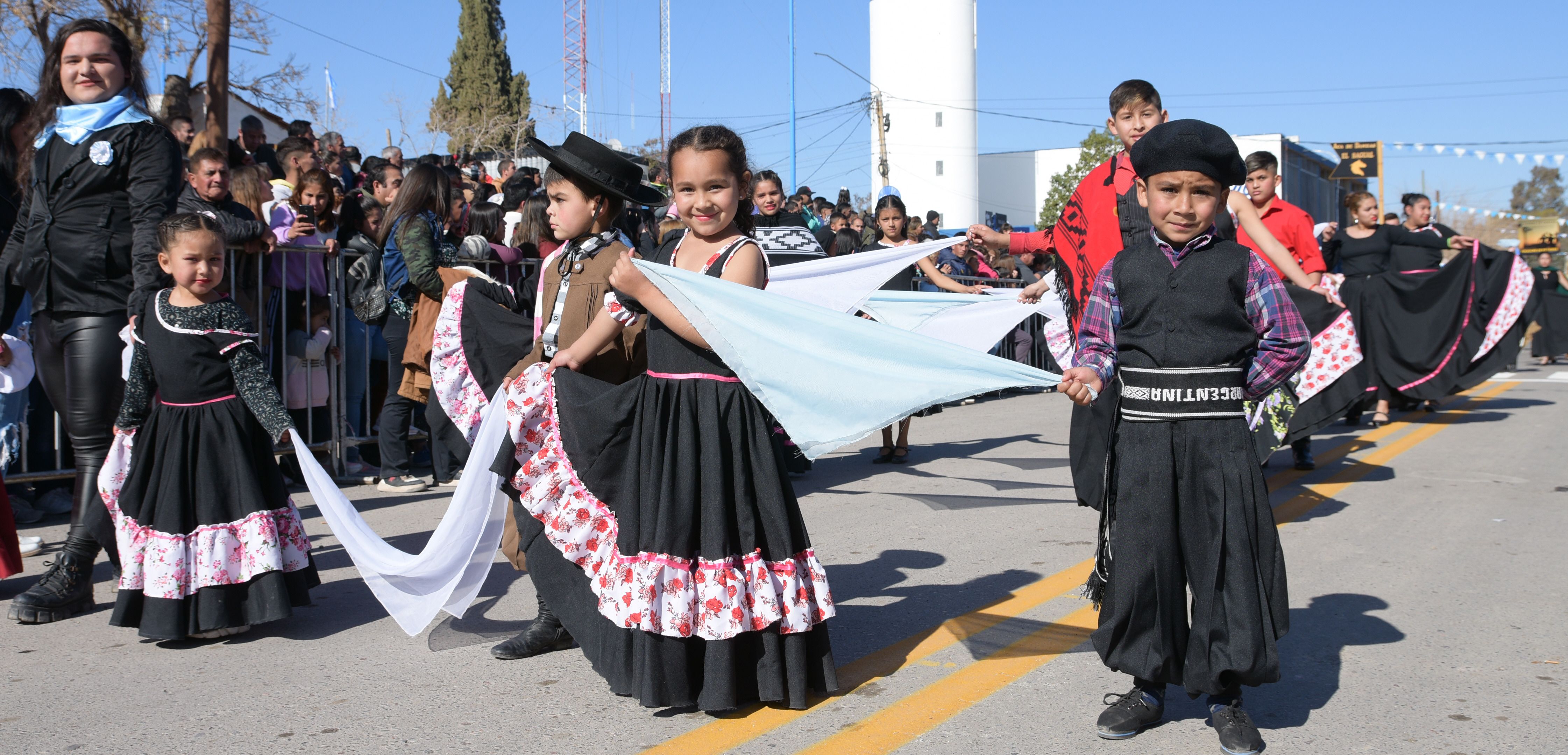 Empilchados. Los chicos que asisten a las diferentes academias de danzas folclóricas de 25 de Mayo desfilaron luciendo las pilchas gauchas, aportando color al desfile.
