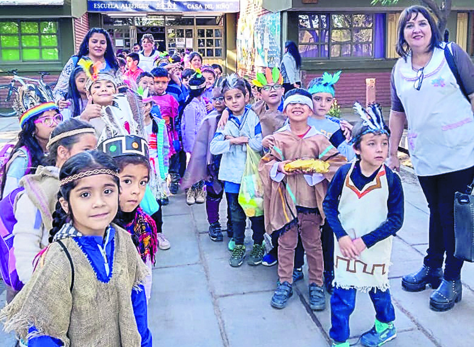 En la Escuela Albergue Casa del Niño, en Valle Fértil, se propusieron conmemorar el Día de la Diversidad Cultural con vivencias y rindiéndole homenaje a los ancestros. Y fueron los alumnos de 1ro, 2do y 3er grado los encargados de llevar a cabo esta iniciativa. Vestidos con los trajes típicos de los pueblos originarios y al ritmo de música indígena recorrieron las calles del pueblo para mostrar respeto por sus antepasados. La jornada terminó en la biblioteca donde una vecina descendiente de huarpes les habló sobre las costumbres ancestrales.