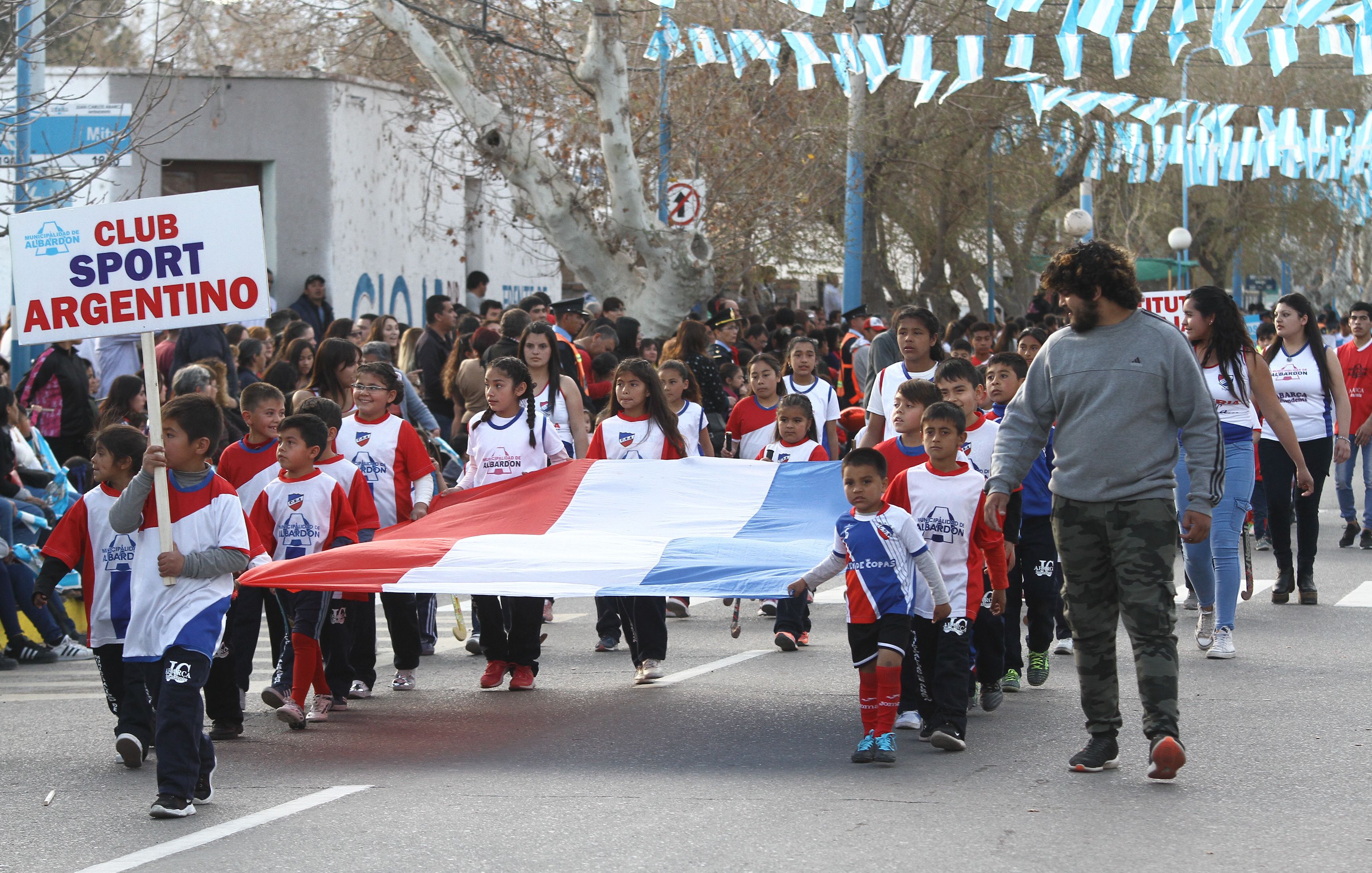 El deporte. En el desfile participaron los niños y jóvenes que concurren a las diferentes instituciones deportivas de Albardón.