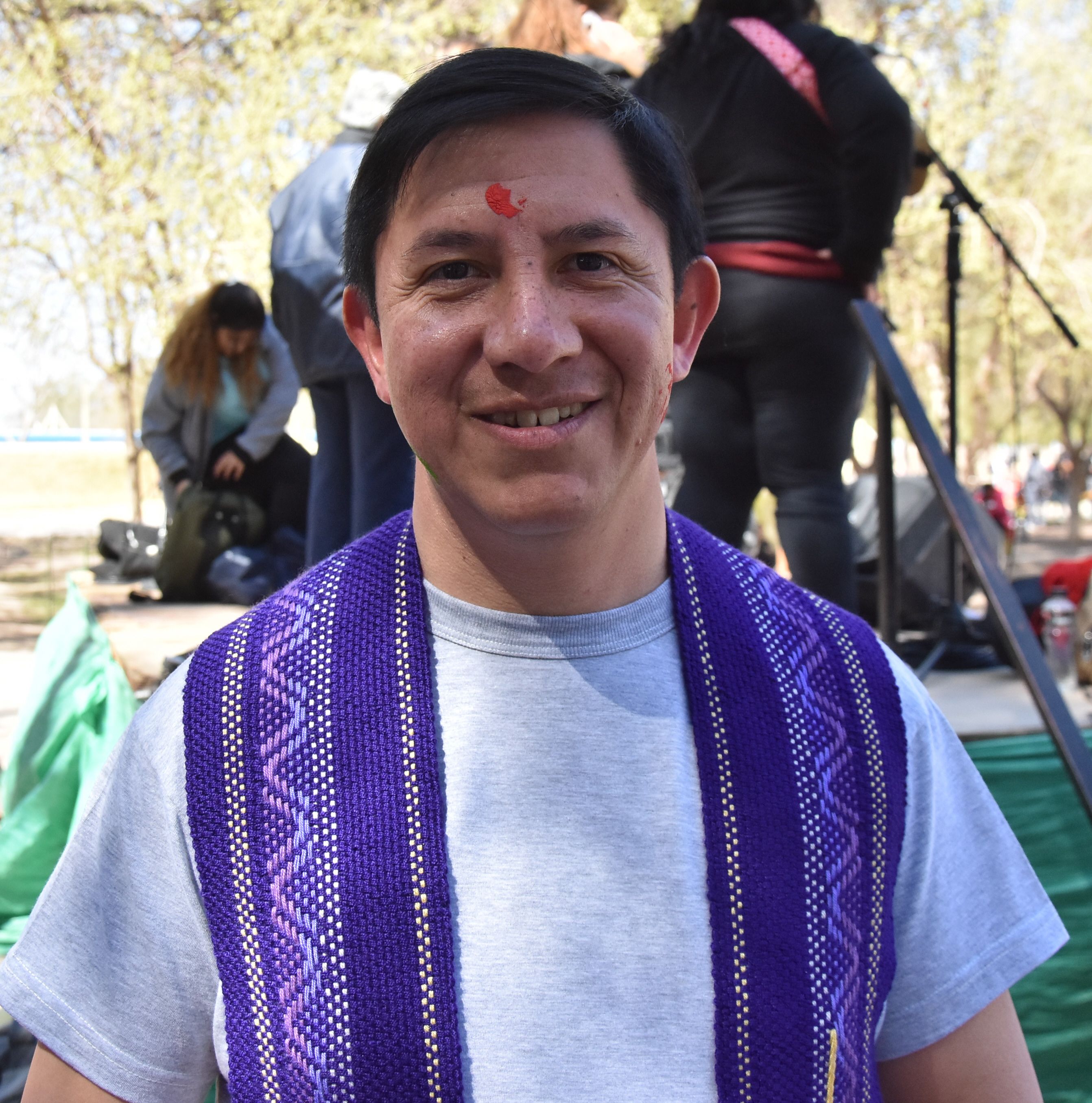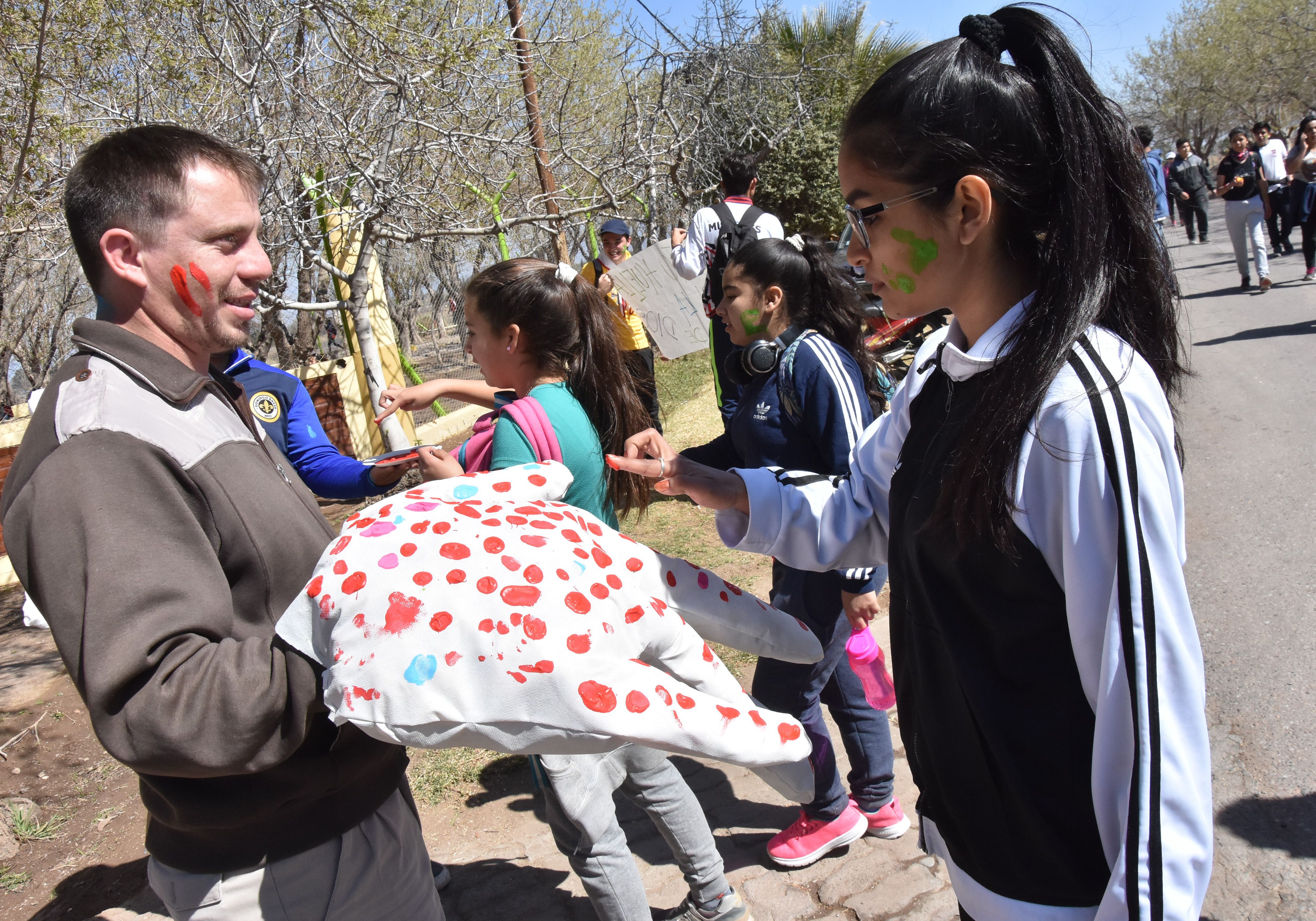 Producción. En la peregrinación se pintaron varias mejillas con una "E" verde, simbolizando la esperanza y se decoraron unas manos de tela.