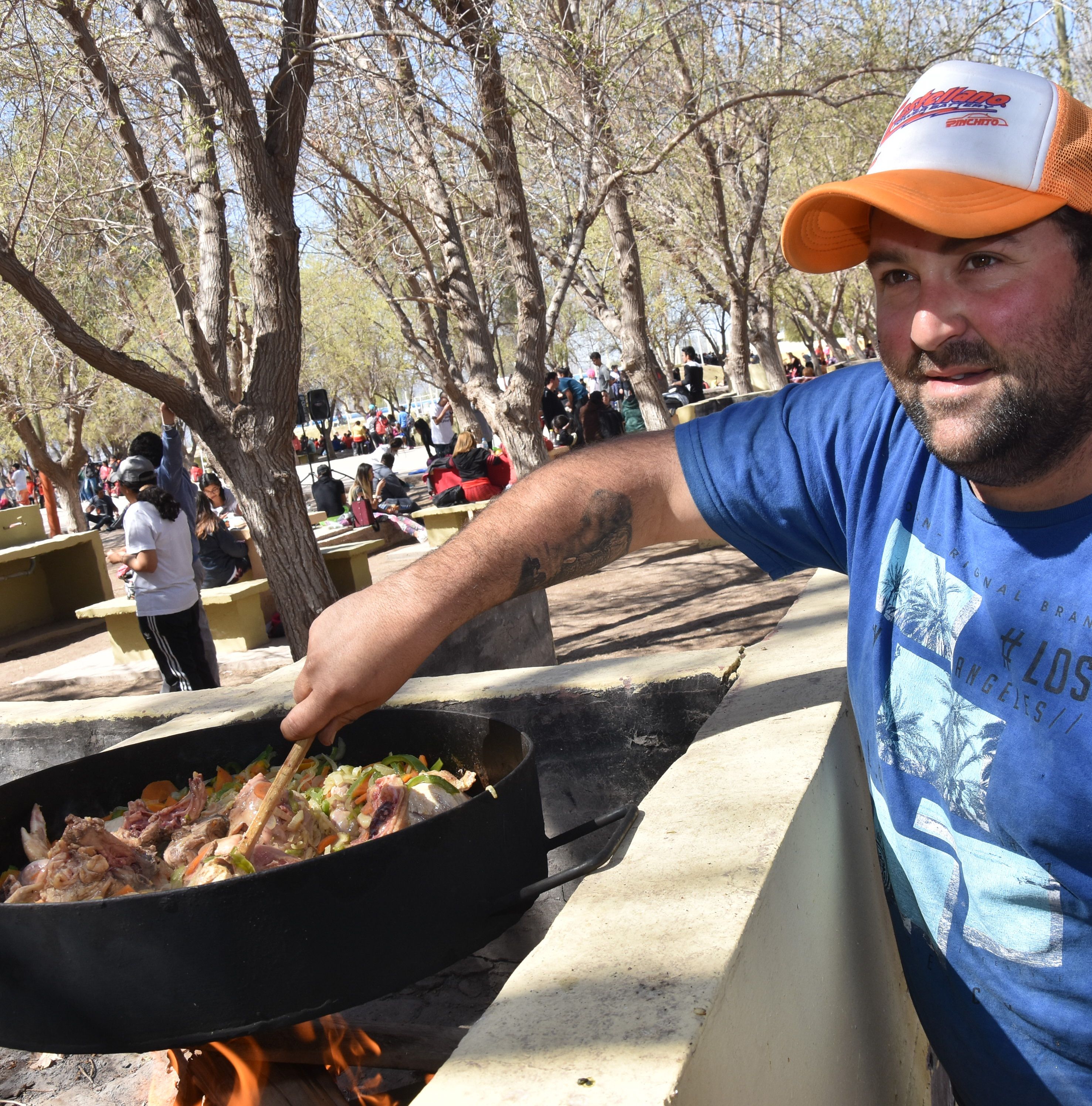 "Mi sobrina Abril quiso participar por primera vez en la Peregrinación y convenció a varios familiares para que la acompañasen desde la Catedral hasta Ceferino Namuncurá, como a mi esposa Carla y al primo Nicolás de 7 años, entre otros. Yo vine al camping a prepararles el almuerzo, un pollo al disco".