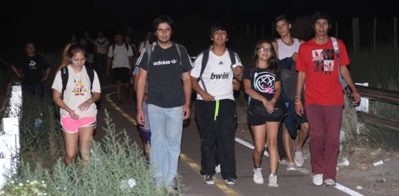 Con 3,50 pesos Franco, Ezequiel y Ramiro compraron una pulserita, al comienzo de la senda. Mientras que Sebastián le puso pilas a unas luces de su árbol de navidad y caminó desde Chimbas. De esta forma, los jóvenes fueron los más llamativos de la peregrinación. Y a la vez fueron los más ruidosos. Cantaron y escucharon música con los celulares, para que la caminata fuera más amena. Es más algunos llevaron hasta radiograbadores a batería en donde los CD o los pendrive le pusieron cumbia y cuarteto a la noche.