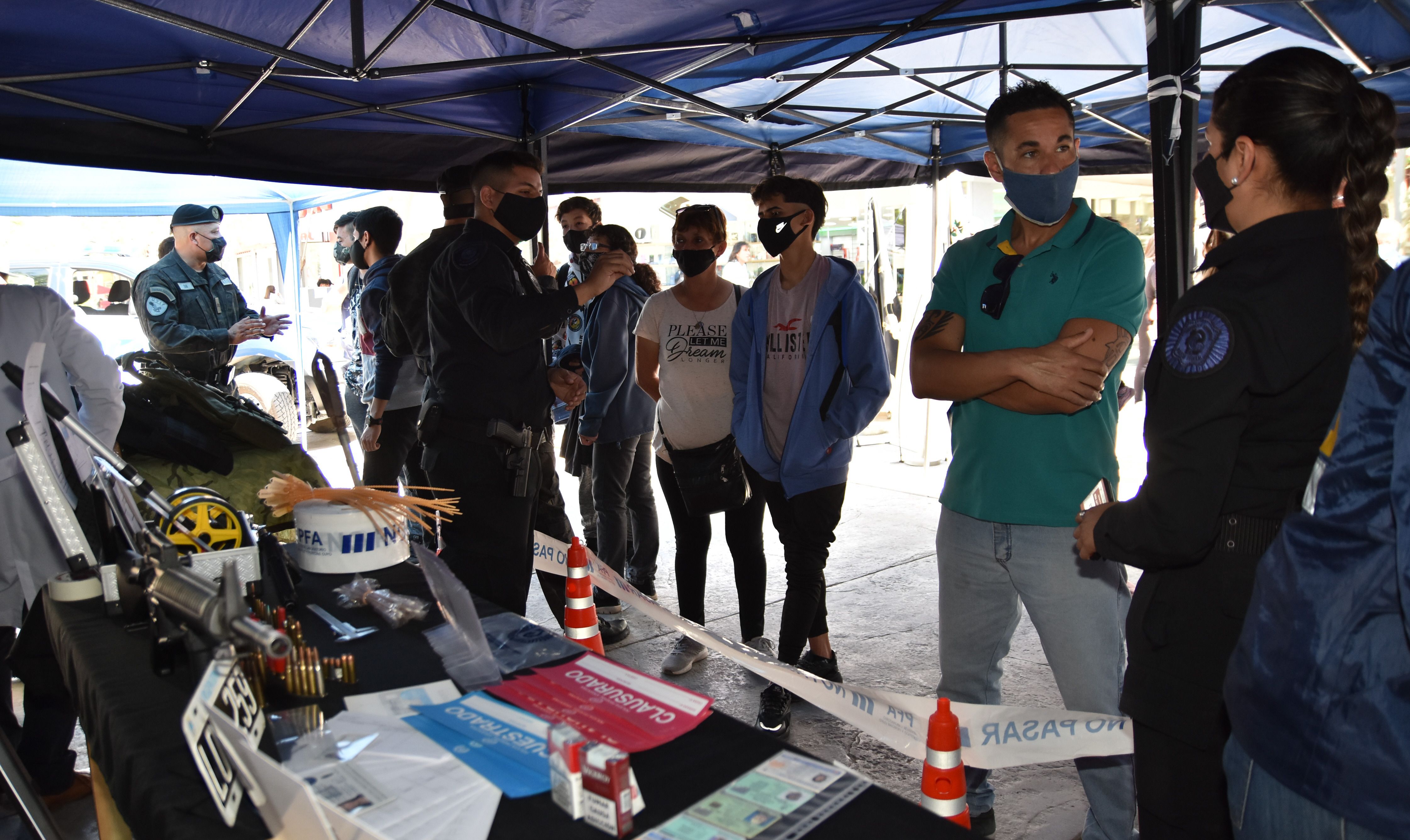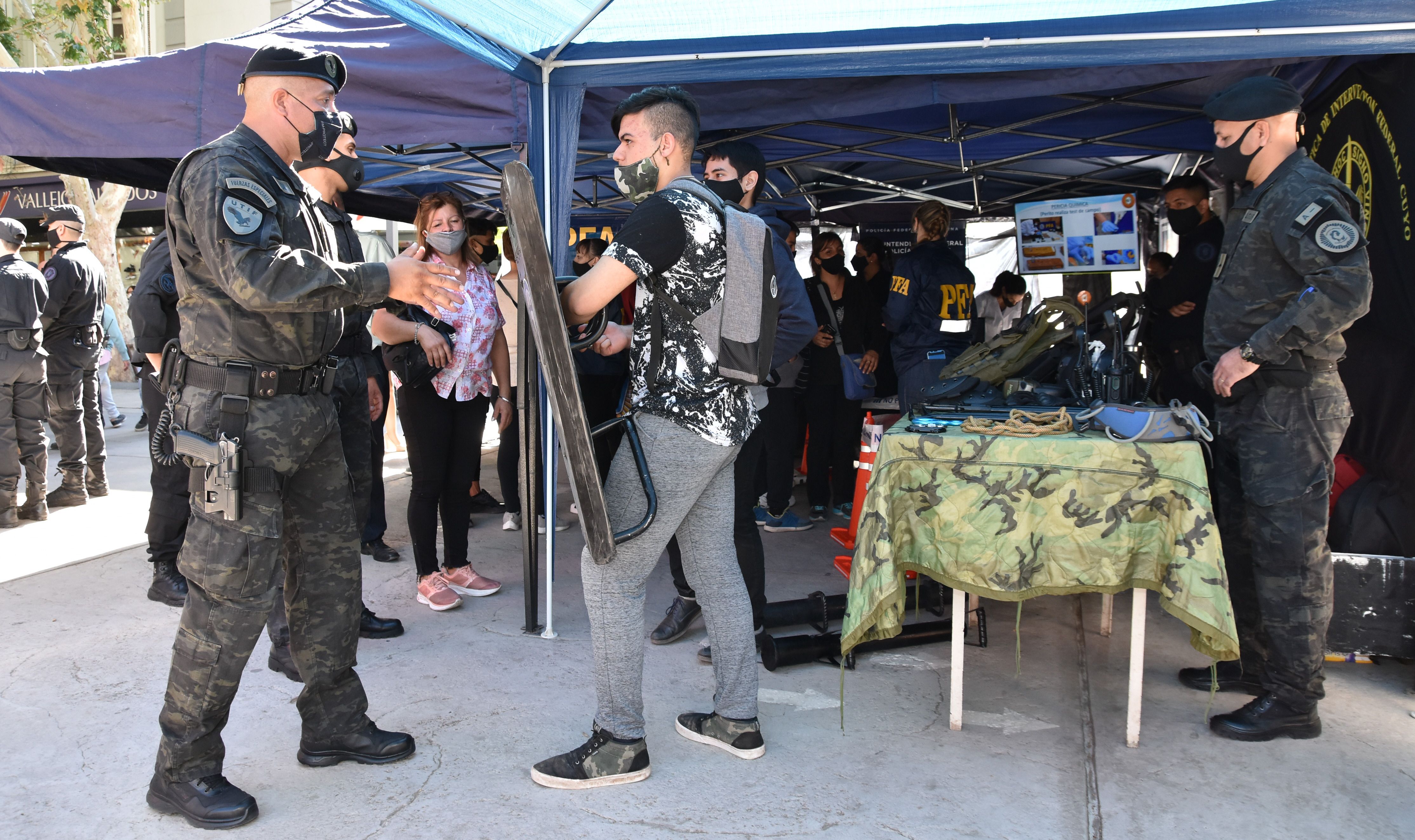 Llegaron y estacionaron la camioneta en el cruce de las peatonales, en el microcentro. Decenas de efectivos de la Policía Federal aparecieron con sus uniformes y escudos de contención y sacaron de los caniles 4 perros uniformados. Este movimiento de policías llamó la atención y hasta causó miedo en algunos peatones. Sin embargo, ese despliegue no era parte de un operativo de seguridad, sino de una jornada de puertas abiertas de esta fuerza de Seguridad, que salió a mostrar cómo hacen su trabajo y a dar información a los jóvenes que quieran ingresar a la Policía. En medio de esta jornada, los perros se volvieron la gran atracción, sobre todo entre los niños que pasaron por la zona céntrica. Esta actividad fue desarrollada en el contexto del festejo del Bicentenario de esta fuerza policial.