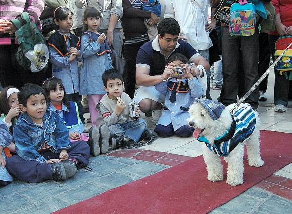 Ayer hubo un particular festejo del Día del Animal en el microcentro. En el cruce de las peatonales desfilaron perros y perras con prendas confeccionadas especialmente para mascotas. Y fueron la atracción para todos los peatones que pasaron por el lugar. Sobre todo para los más pequeños que presenciaron el evento.