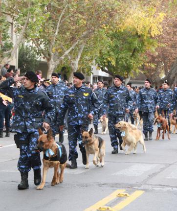 La alegría de los más pequeños llegó en 4 patas. Es que los perros de la Sección Canes de la Policía y las mulas del DIM 22 (Ex Rim 22) fueron el atractivo por el cual los chicos que miraban detrás de las vallas de contención, deliraron. Con las manos coloradas de tanto aplaudir saludaron a los gritos a los animales. Así, entre el fervor por el festejo patrio y el frío de la mañana más de 50.000 personas disfrutaron del clásico desfile cívico-militar con el que se festejó el Día de la Revolución de Mayo.