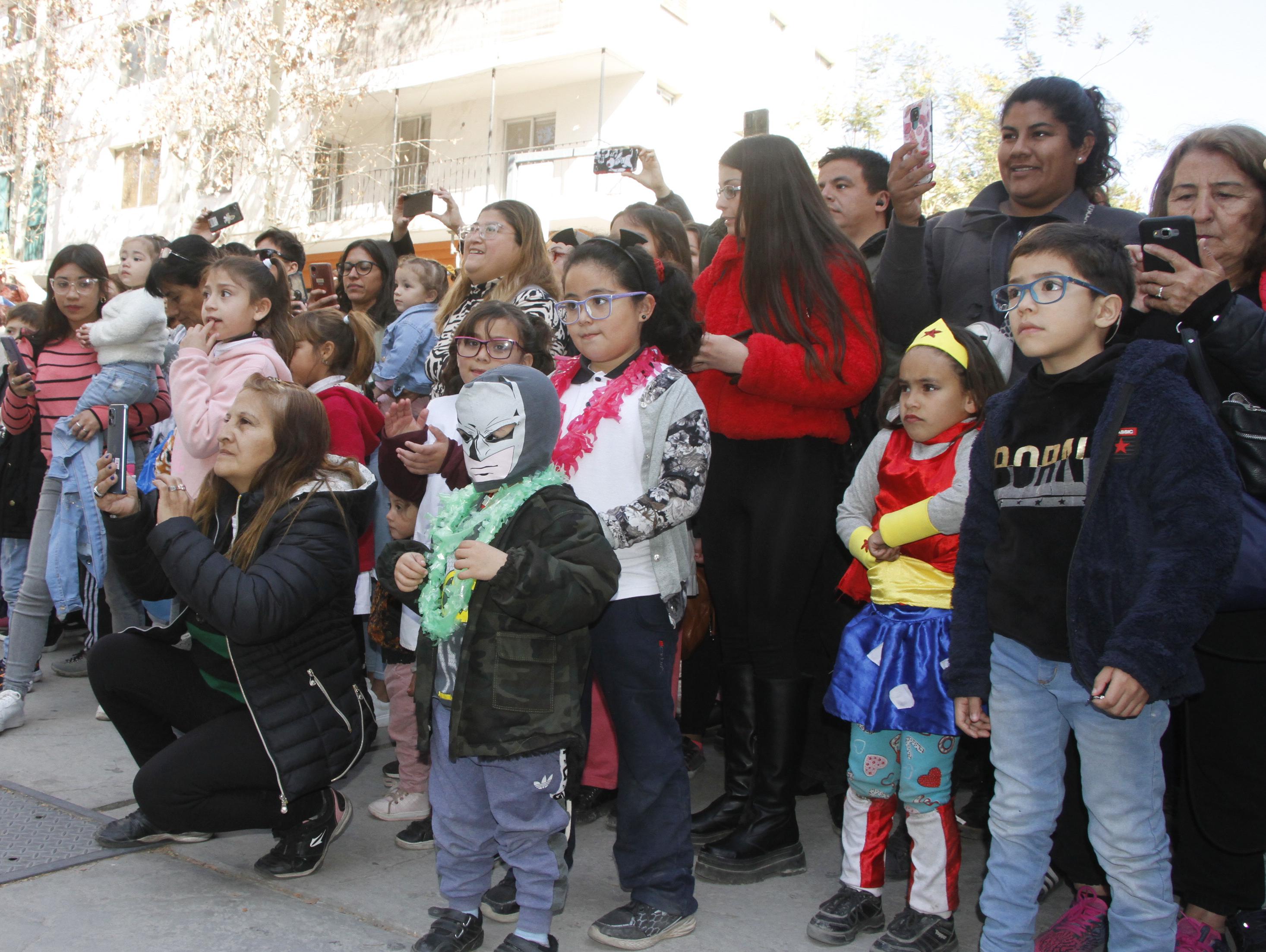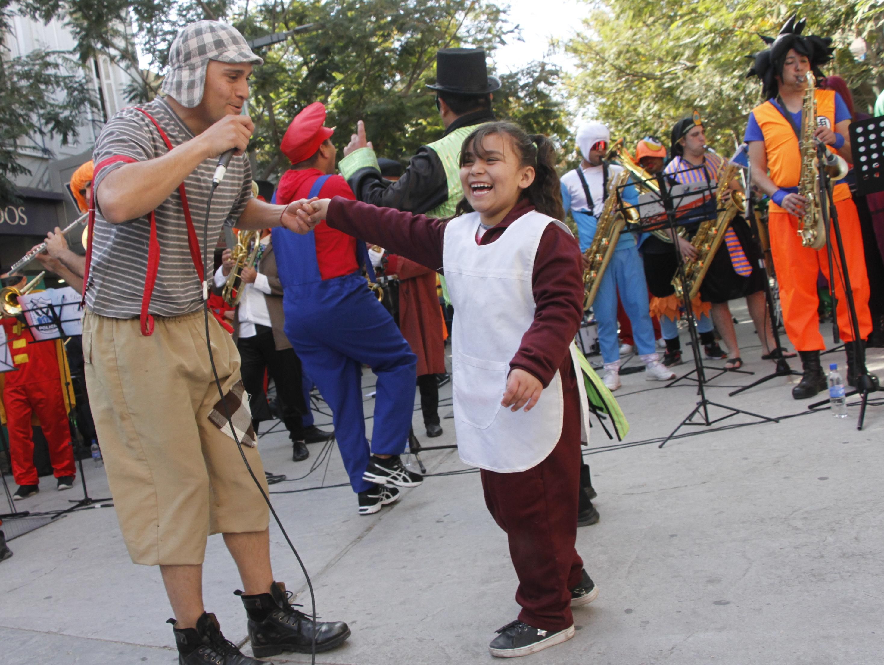 Desde que ingresaron a la Peatonal céntrica revolucionaron a todos. No sólo porque lo hicieron tocando la canción del mundial "Muchachos", sino también por su imagen. Todos se caracterizaron de personajes infantiles para atrapar la atención de los chicos. Y superaron las expectativas, ya que hicieron cantar y bailar hasta a los grandes. Fueron los efectivos que integran la Banda de Música de la Policía de San Juan, que ayer ofrecieron un show para festejar de manera anticipada el Día de las Infancias.