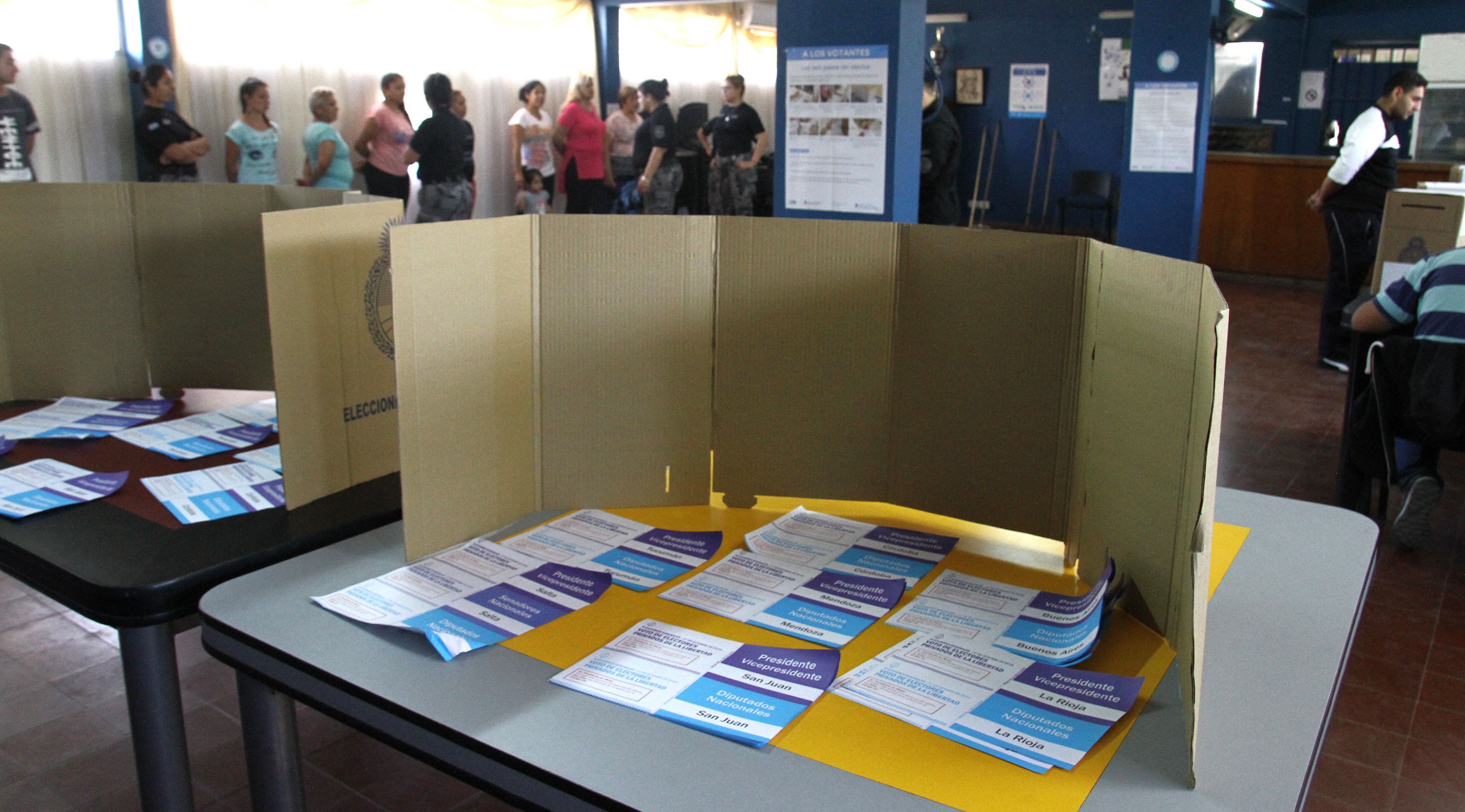 El Casino de Suboficiales del Penal de Chimbas lució diferente. Dos tablones, con dos urnas cada uno, estuvieron ubicados en el centro del salón que tuvo custodias en todas las puertas. Javier Figuerola, director del Penal, comentó que si bien el voto es obligatorio, muchos detenidos optaron por no votar porque ayer era día de visita familiar.