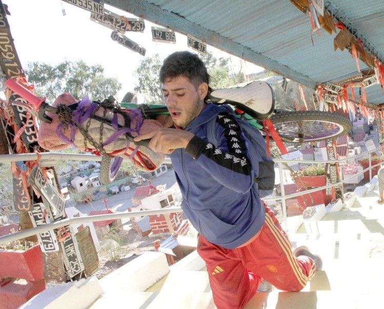 Gonzalo Rodrigo pedaleó desde Pocito hasta Vallecito para rendirle homenaje a su abuela que falleció. Es el quinto año que hace esta travesía y que sube de rodillas y con la bicicleta a cuestas las escaleras para llegar hasta el oratorio de la Difunta Correa. “Hago este sacrificio por amor a mi abuela y para pedirle a la Difuntita que le dé un descanso eterno y en paz porque se lo merece”, dijo el joven.