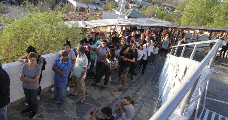 La espera. A media mañana se formó una larga fila de devotos en las escaleras que conducen al oratorio de la Difunta.