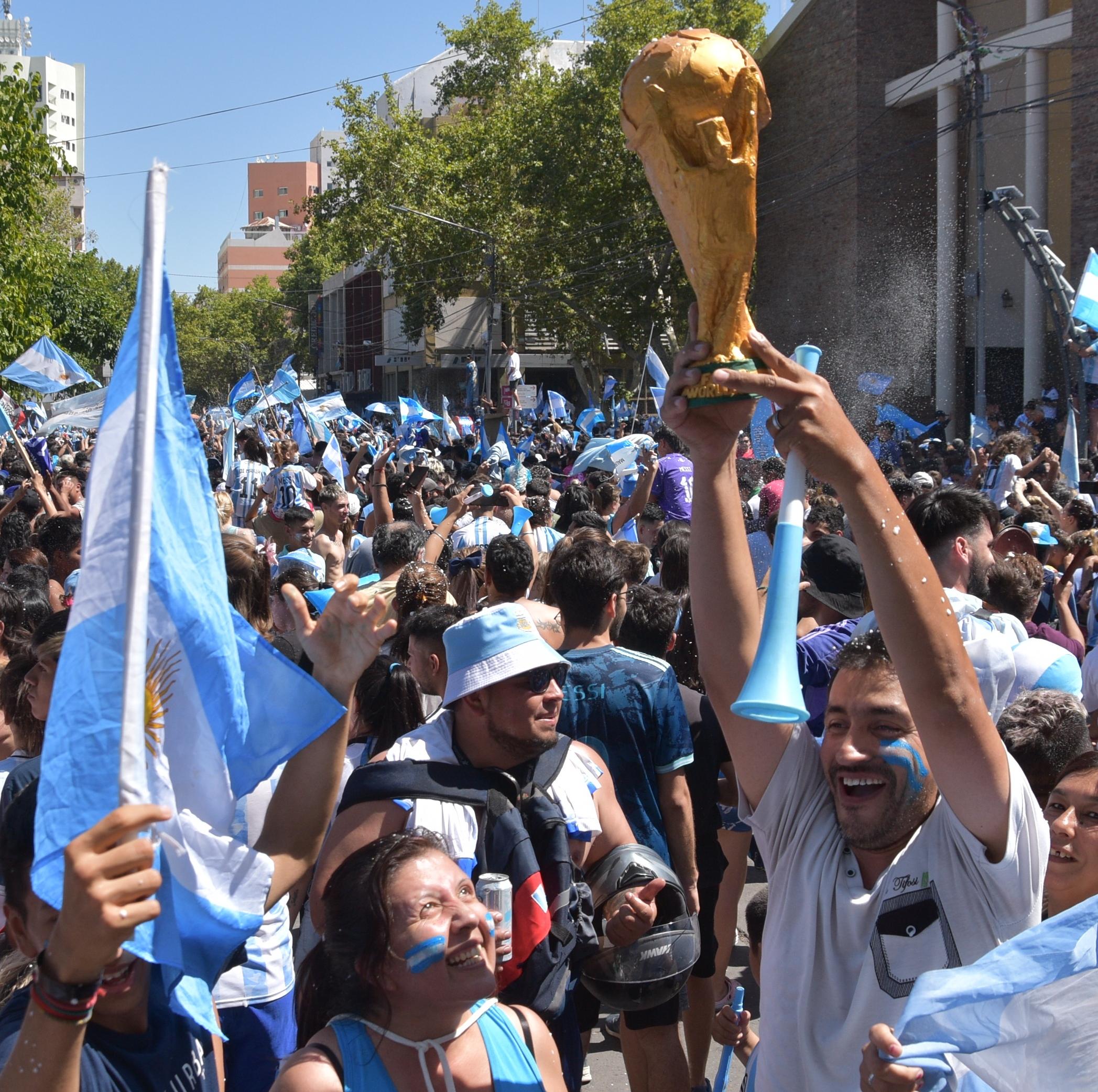 El primer triunfo de Messi y compañía, contra la Selección mexicana, despertó un festejo totalmente desordenado y desparramado, dado que quienes habían salido espontáneamente a hacer una caravana no sabían si dar la vuelta alrededor de la Plaza 25 o recorrer el centro. Ya en la celebración de los triunfos subsiguientes, la plaza sí terminó de consolidarse como epicentro de la alegría sanjuanina. Se pudo ver con mucho énfasis al término de la victoria sobre Croacia, que le dio a Argentina el pase a la final. Y explotó de modo definitivo el domingo 18 de diciembre, tras el histórico y angustioso triunfo sobre Francia por penales, que le dio la Copa a la Scaloneta.