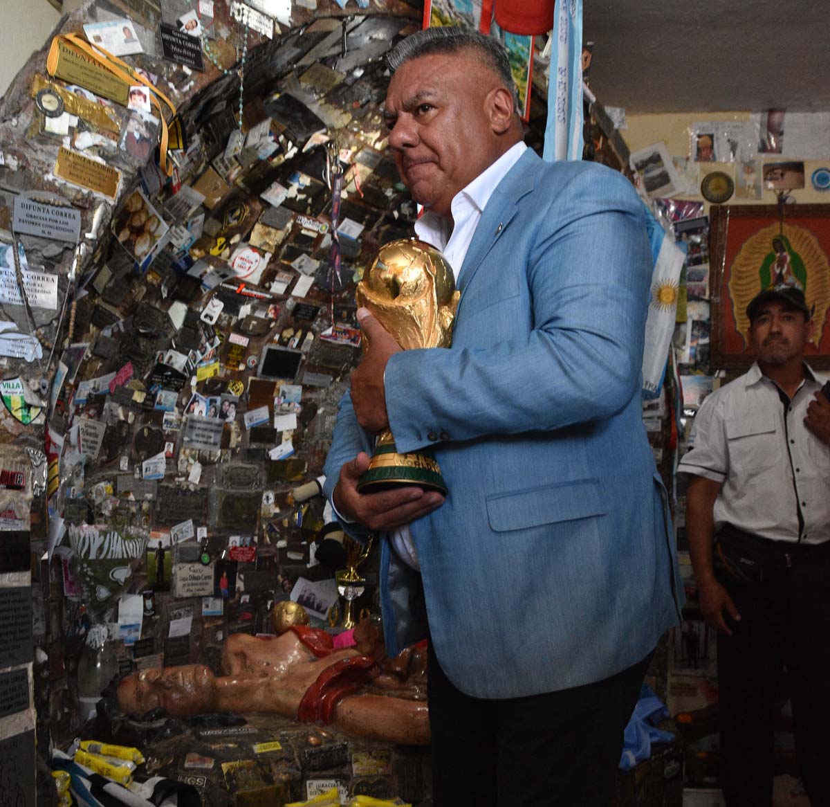 El presidente de la AFA, Chiqui Tapia, llegó a San Juan el 26 de diciembre y trajo la réplica oficial de la Copa para ponerla, a modo de ofrenda, a los pies de la imagen de la Difunta Correa, en el oratorio caucetero. Lo hizo visiblemente emocionado, para cumplir una promesa. Luego, trofeo en mano, fue hasta el Parque de Mayo, donde el Gobierno había organizado una recepción especial abierta al público a la que asistieron alrededor de 60.000 personas. El jugador Exequiel Palacios, integrante de la Selección campeona del mundo, fue parte de la fiesta que se vivió en el Parque y hasta de animó a cantar el tema "Muchachos" al micrófono, junto a la gente.