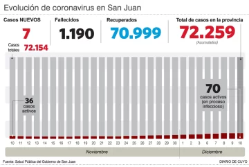 En contraposición, ayer fueron informados siete casos positivos y los pacientes que están atravesando procesos infecciosos son 70, mientras que el acumulado ahora tiene 72.259 infectados.
