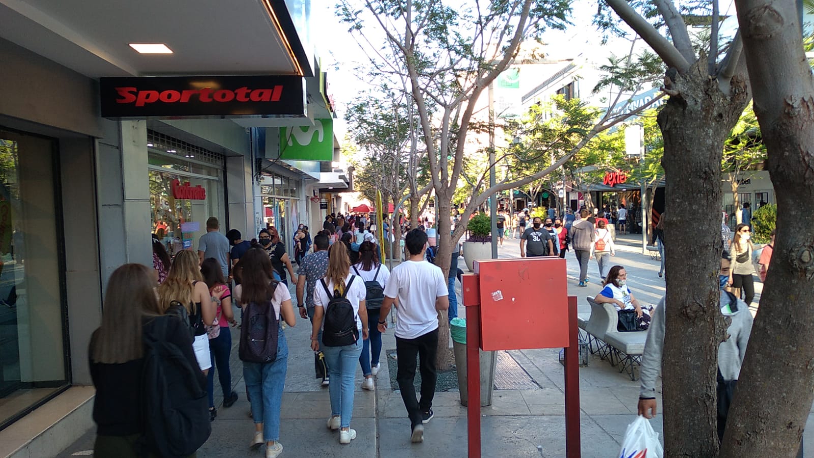 La mayoría con bolsas, paquetes y cajas iban y venían en el cruce de Rivadavia y Tucumán. Además, quienes habían culminado con las compras apartaban un lugar en las cafeterías para reponer energías.