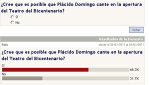 De las casi 400 personas que votaron en una encuesta publicada por este medio, el 67,4% se mostró confiado en que el reconocido tenor cantará en la apertura del Teatro del Bicentenario.