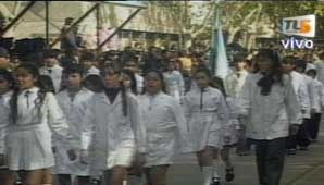 Una vez que las autoridades provinciales, encabezadas por el gobernador de la provincia, tomaron ubicación en el palco comenzó el desfile de las escuelas, públicas y privadas de la provincia, instituciones intermedias, asociaciones y fuerzas de seguridad.
