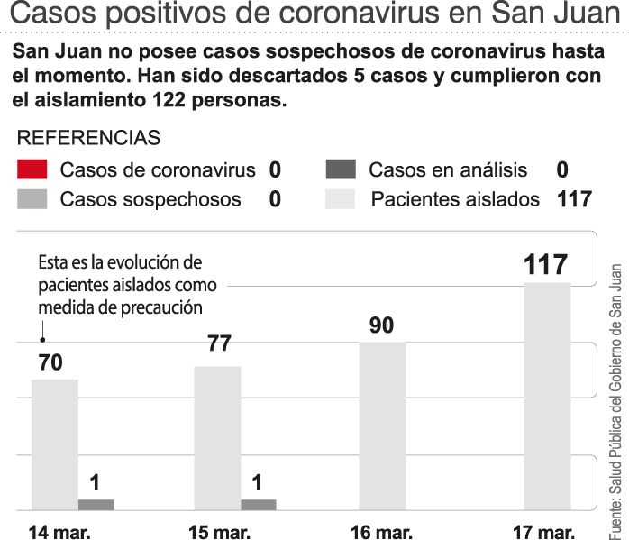 En San Juan, en tanto, Salud Pública informó que no hay casos positivos, aunque 117 pacientes se encuentran aislados (ver infografía).
