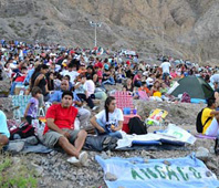 Los primeros en llegar fueron aquellos que eligieron no perderse detalles desde el cerro. Con conservadoras, mesas y reposeras comenzaron a ubicarse seis horas antes del horario de inicio.