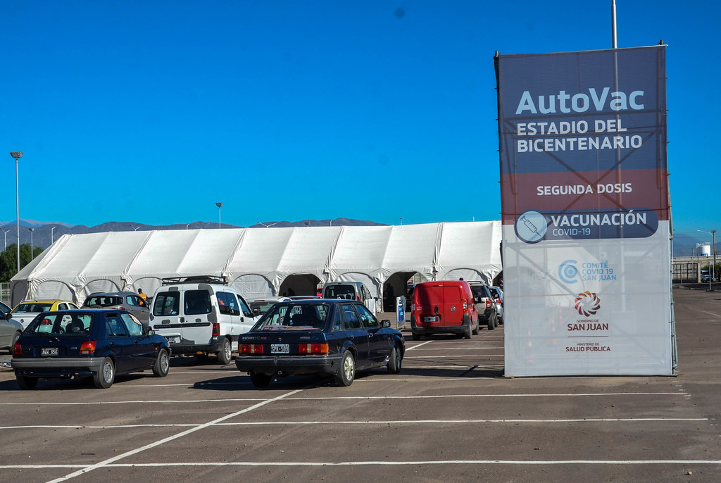 El Ministerio de Salud Pública destacó que también ha puesto a disposición la opción de AutoVac a mayores de 60 años. Dicho centro de vacunación está ubicado en el Estadio Del Bicentenario, en Pocito. La metodología consiste en la recepción de las personas para verificar el turno, luego ingresan con el vehículo, les colocan la primera dosis y luego esperan en posvacunal unos 20 minutos, dentro de la comodidad de su coche, controlando así que no tengan ningún tipo de secuelas después de la colocación de la vacuna. Finalizado este proceso, ya se pueden retirar.