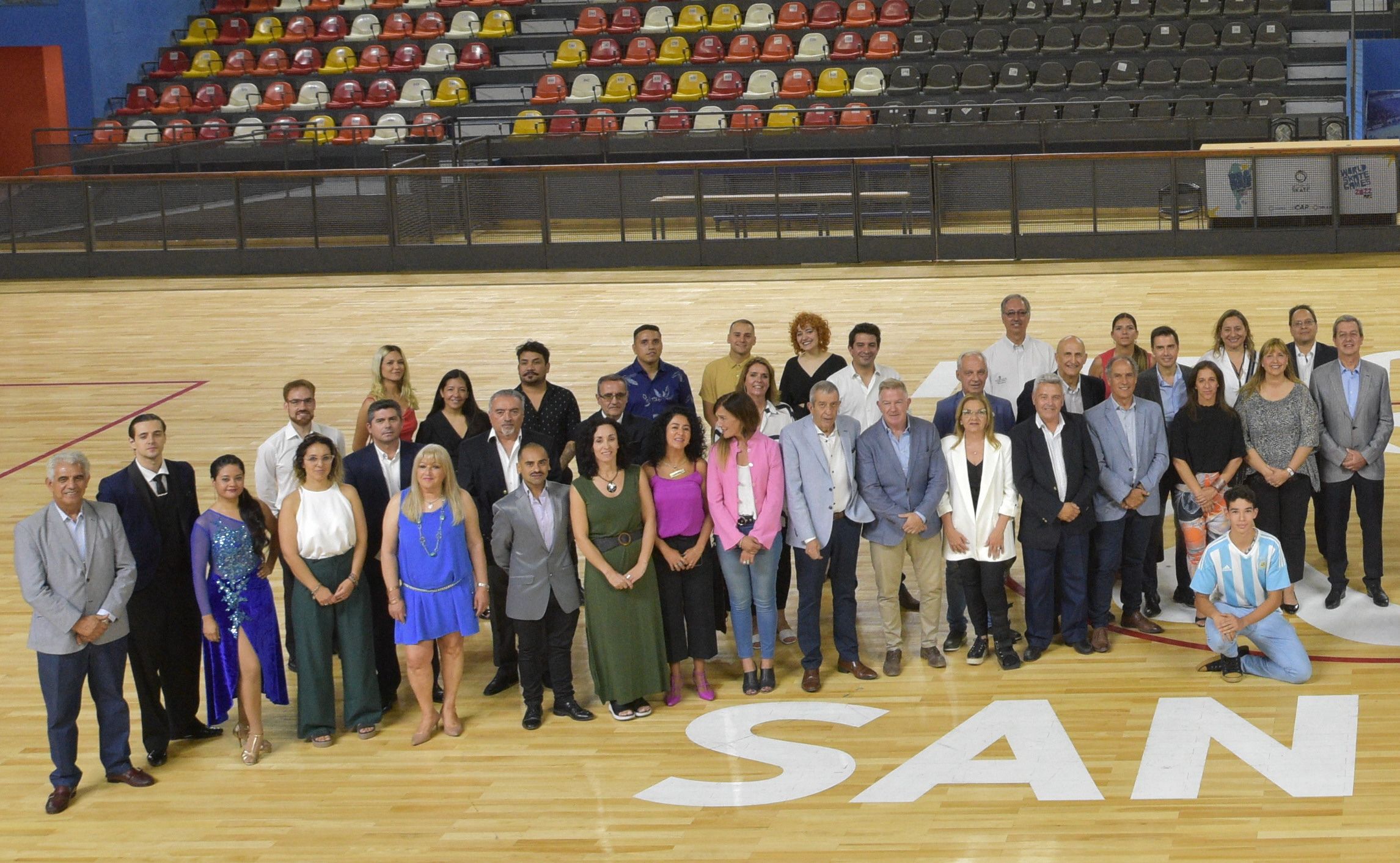 Santino Castro, el niño campeón nacional de jineteadas, llegó tarde al estadio de los campeonatos mundiales de hockey sobre patines y tampoco pudo participar de la foto grupal de los Personajes del Año. Igual, aprovechó la ocasión para tomarse fotos junto al gobernador Uñac y compartir el ágape.