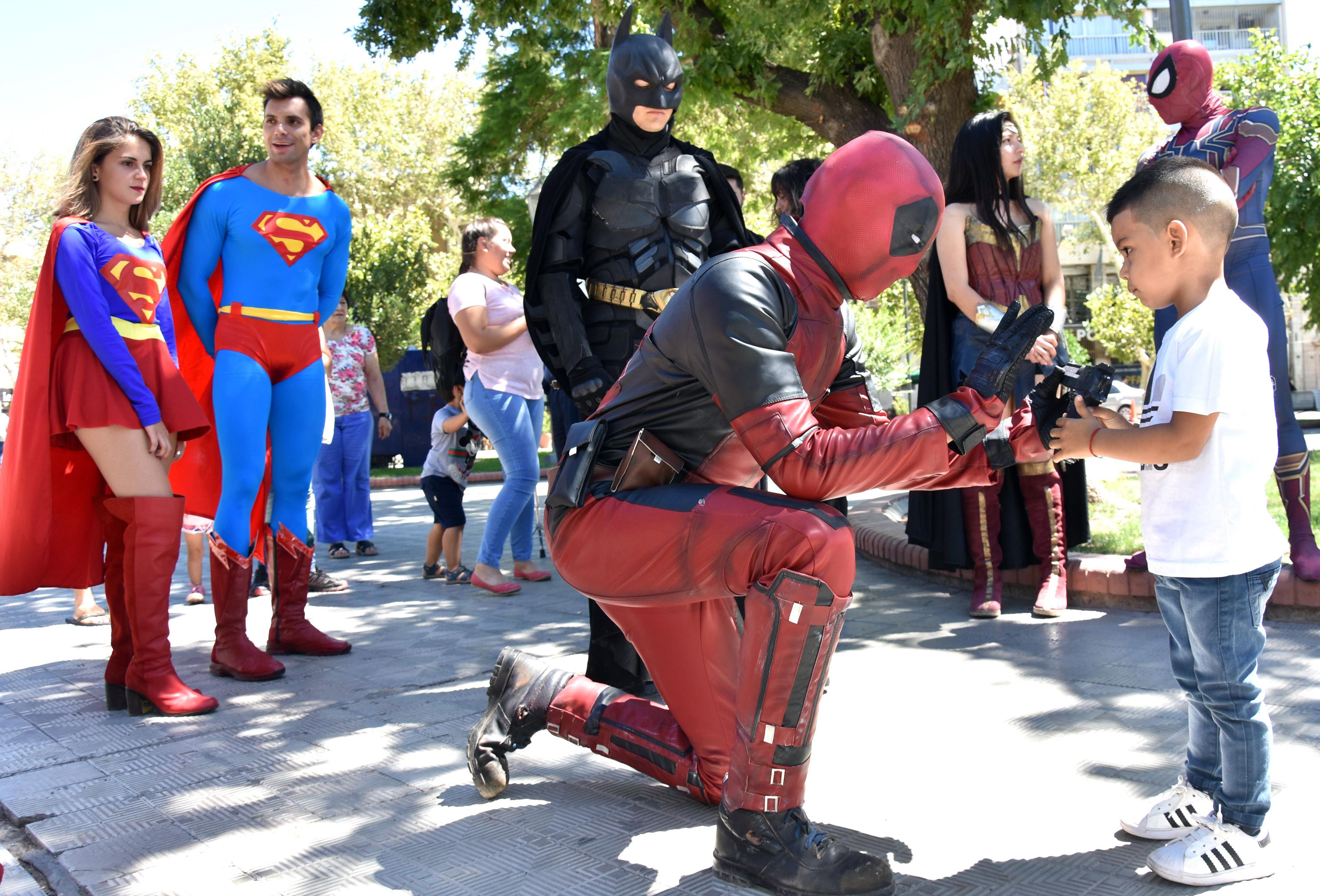 Ver caminar juntos a Batman, Superman, Hombre Araña, Mujer Maravilla, Superchica, Capitán América, Deadpool y a Ironman no es algo que suceda todos los días. Es por eso que tanto los niños como los adultos aprovecharon la oportunidad para tomarse fotos junto a ellos. Lo hicieron hasta los turistas de Santiago del Estero y de Córdoba que paseaban por la plaza y creyeron que los superhéroes estaban en la ciudad para darles la bienvenida. Pero se equivocaron. Su misión es divertir a los chicos con una propuesta muy original.