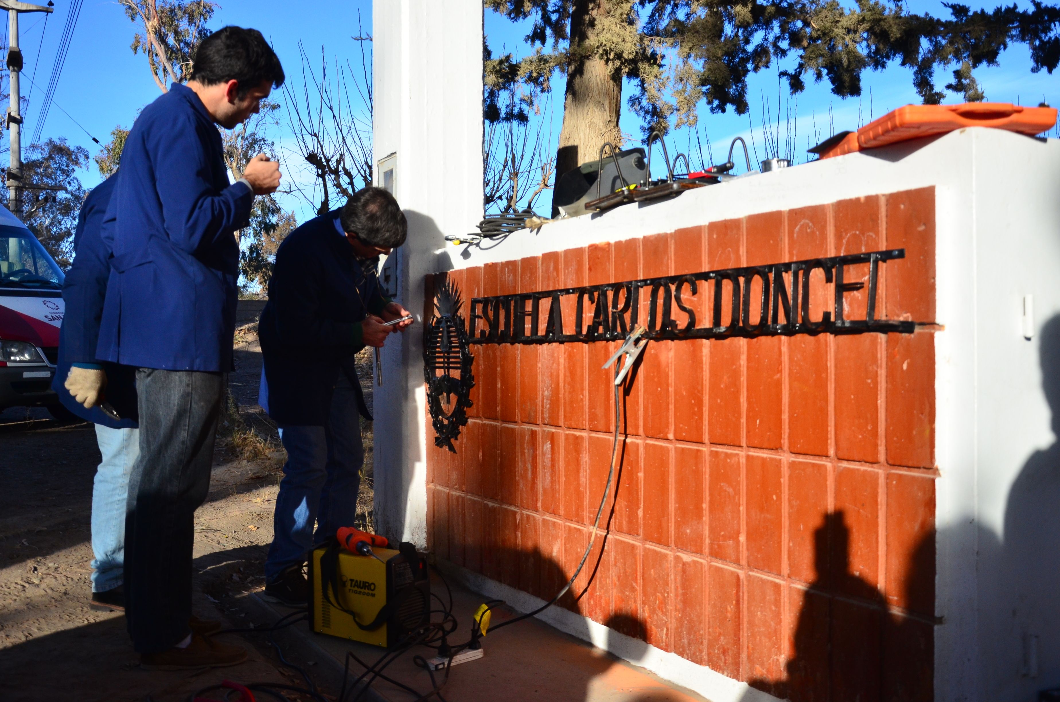 Días antes de llevar las donaciones un grupo de docentes fue hasta la escuela y se llevó el viejo cartel que estaba dañado, para repararlo en la Boero. Ayer lo devolvieron como nuevo y lo colgaron. Así, la escuela lució de nuevo su nombre en el ingreso, después de varios años sin tenerlo. Este trabajo fue casi artesanal.