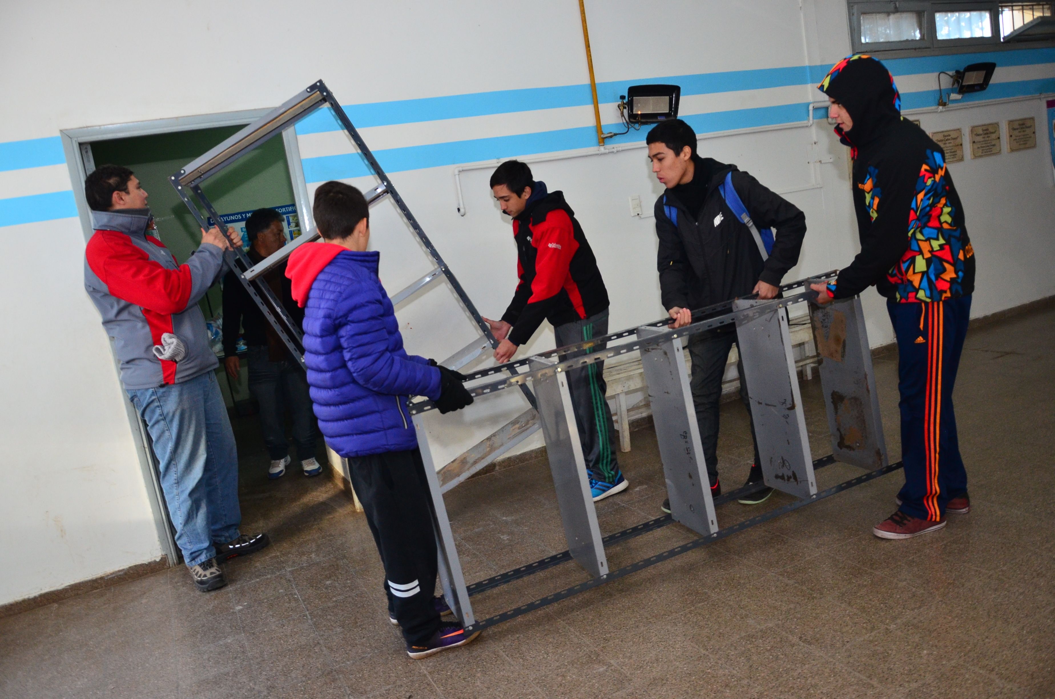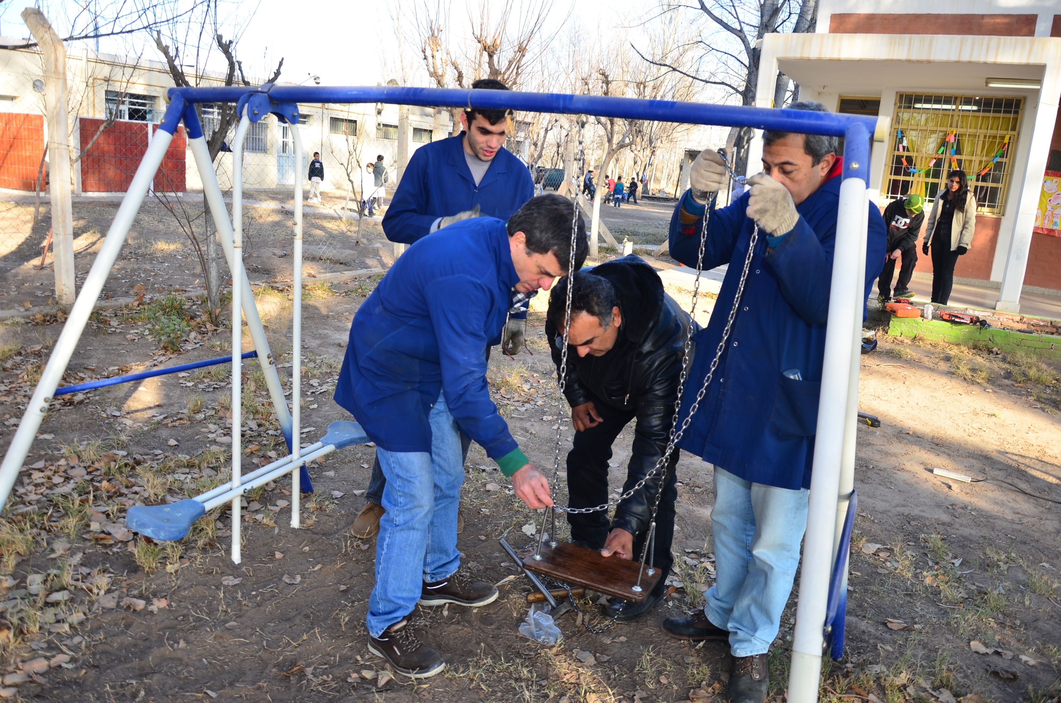 Los ruidos parecieron hacer eco. El sonido de la soldadora, la amoladora y el golpe de los martillazos en las chapas se escucharon durante toda la mañana en la escuela. Con los clásicos guardapolvos azules, los docentes y alumnos de la Boero utilizaron su conocimiento en distintos oficios, y con guantes repararon el cartel de entrada de la escuela y lo dejaron como nuevo. Esto no fue lo único. El patio de juegos de la salita de nivel inicial, en donde los únicos tres juegos estaban rotos, tuvo vida de nuevo. Entre la tierra y el salitre del lugar, y mientras bebieron a sorbos un chocolate caliente para entrar en calor, los chicos repararon el tobogán, pusieron dos columpios con cadena y asiento nuevo y hasta dejaron cero kilómetro el sube y baja, para que los niños de jardín (hay una salita integrada con chicos de 3, 4 y 5 años) puedan jugar en los recreos. Y mientras todos trabajaron o jugaron, el olor a choripanes hizo que a todos se les despertara el apetito. Es que, al finalizar, los estudiantes y los docentes de los dos establecimientos compartieron el almuerzo en el patio de la escuela.