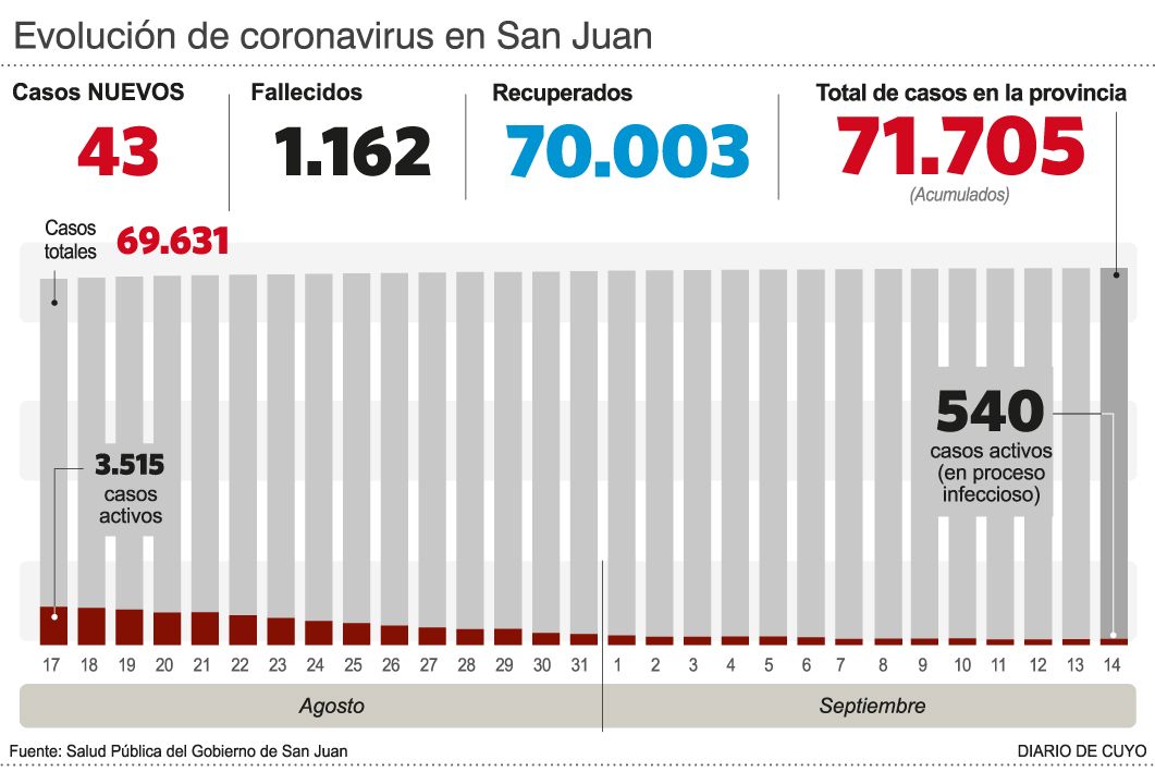 De ellos, hay 540 sanjuaninos con proceso infeccioso en curso, en tanto que los internados son 86, entre los cuales no hay menores ni embarazadas. Los recuperados, en tanto, ayer rompieron otra barrera pues ahora son 70.003.