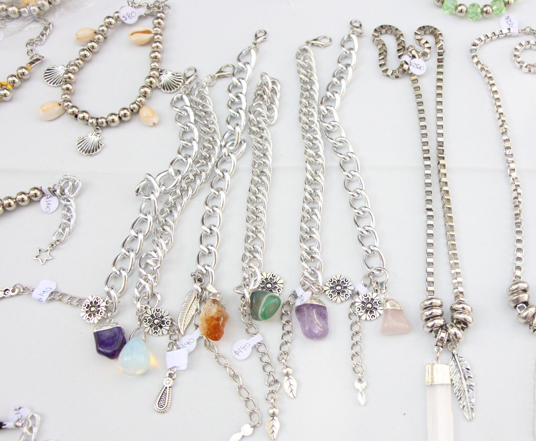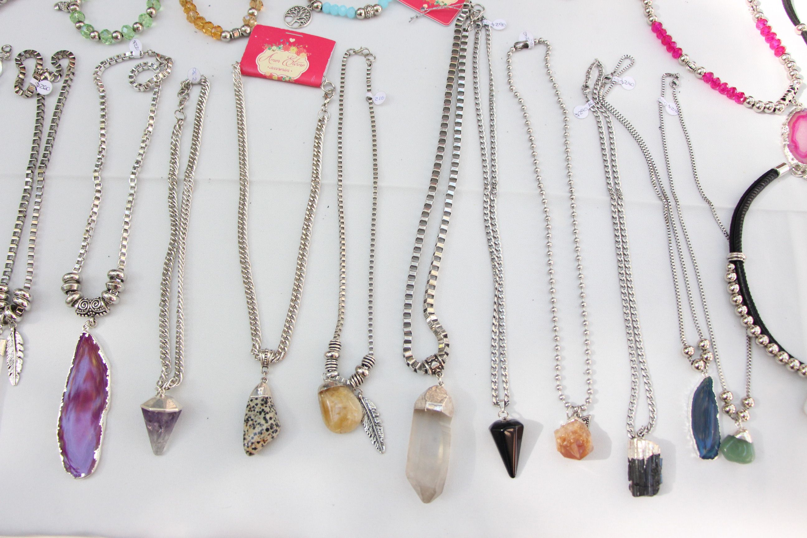 Collares de piedras: $200, $300