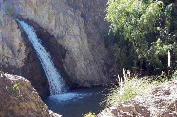 *La cascada: es un salto de agua de 5 metros que está dentro del territorio del Parque Nacional El Leoncito. Lo curioso es que es un oasis en medio de una zona árida por excelencia y esto le da una variedad natural llamativa.