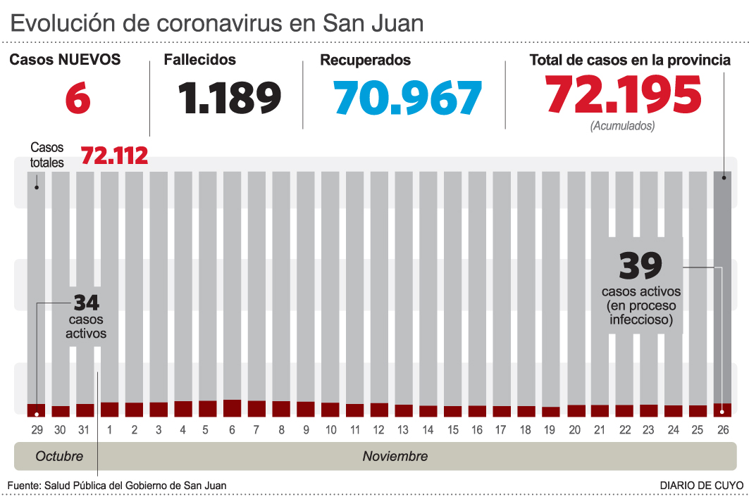 En cuanto a los infectados de Jáchal, que llamaron la atención puesto que fueron seis en un mismo día y rompieron la tendencia media de detecciones diarias que arrastraba la provincia, hubo tres muestras que viajaron a Buenos Aires. Los infectados son familiares y la sospecha es que estuvieron con una persona de Córdoba; a la vez que al departamento norteño llegó ayer personal de Epidemiología para trabajar con los médicos locales en esta situación.