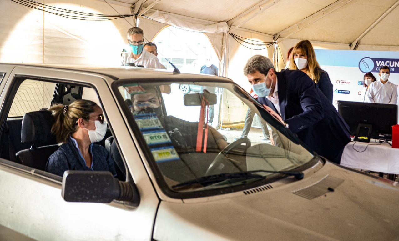 Para seguir el proceso del Autovac, el gobernador Sergio Uñac visitó ayer el Estadio del Bicentenario. Estuvieron además la ministra de Salud, Alejandra Venerando, y otras autoridades de la cartera sanitaria. Durante la visita el Gobernador tuvo contacto con las personas que asistieron a la inmunización. "La idea es abrir más sitios donde puedan vacunarse y que podamos agilizar este sistema, dependiendo de la cantidad de vacunas que Nación va mandando. También será útil extender los horarios para reducir los tiempos", dijo el mandatario.