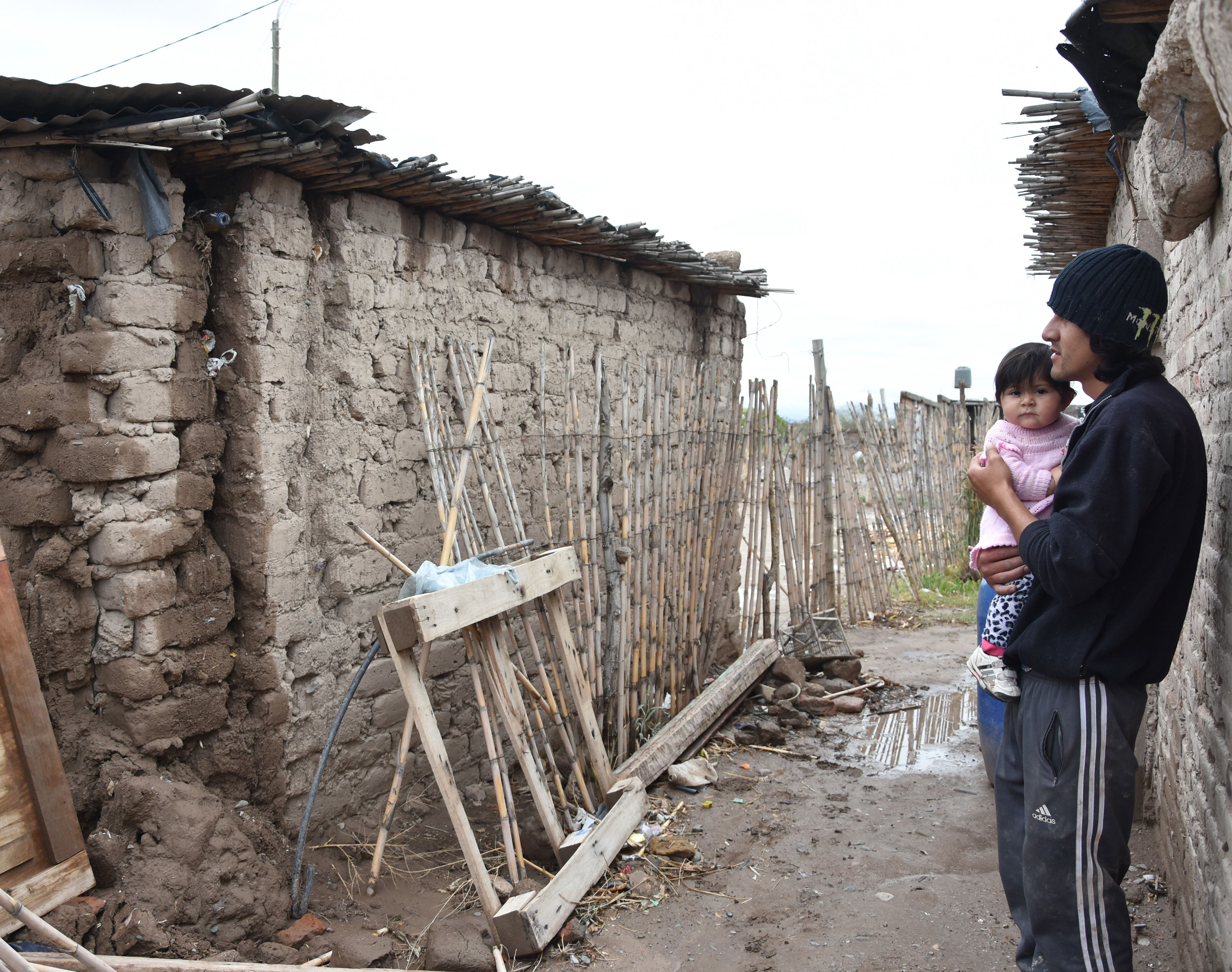 Evelyn Castro no tiene consuelo. Su hija de dos años tiene una enfermedad en la piel provocada por la tierra. Por eso trata de no dejarla en el suelo, sino que la mantiene alzada, sentada o acostada para que no se agrave su problema.