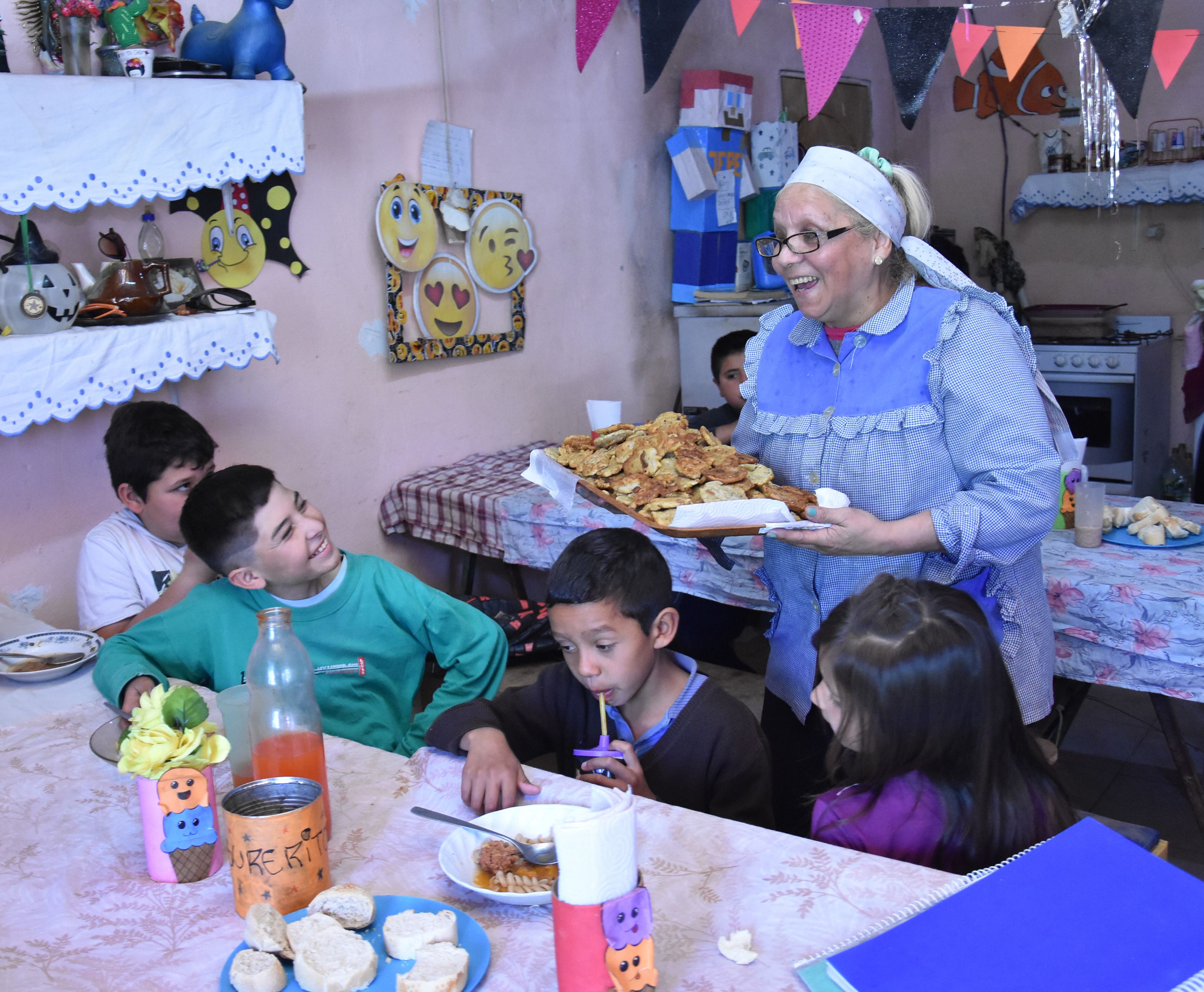 El comedor funciona de lunes a viernes, y en horario extendido y sin tope. "Hay chicos que a las 11 ya están almorzando. Son los que caminan una hora para llegar a la escuela. Vienen con el guardapolvo y la mochila, comen y se van. Algunos no se comen el postre, pero se lo llevan de merienda para el recreo. Y a las 14, almuerzan los chicos que salieron de la escuela a las 13. Pero las puertas del comedor están abiertas hasta la noche. A veces alguien me golpea la puerta a la medianoche para ver si me sobró algo de pan", dijo Mercedes.